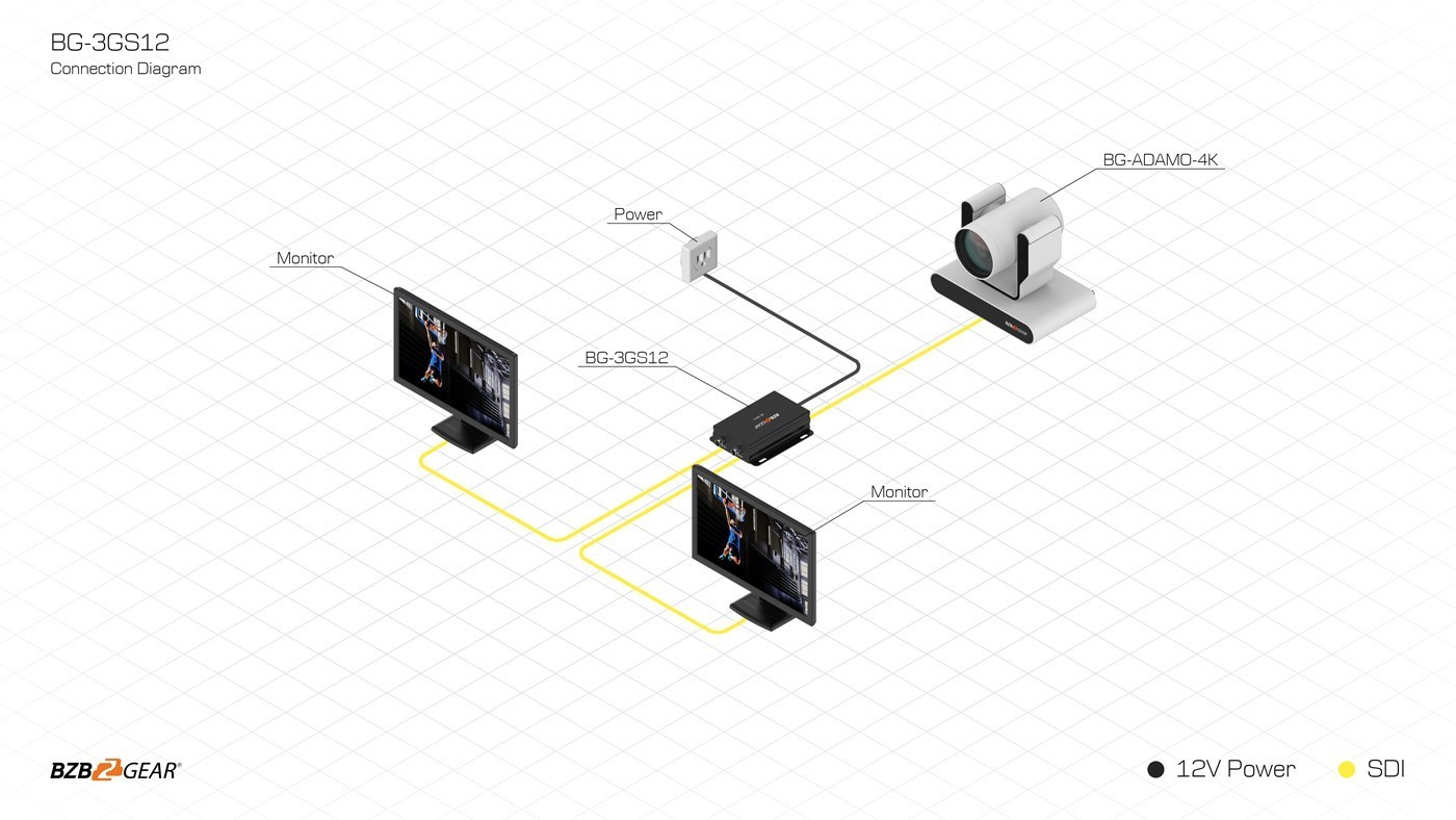 Le BG-3GS12 est un séparateur 1x2 3G-SDI qui divise une entrée SDI sur deux sorties SDI simultanément. Avec une fonction de relancement de signal, il peut également étendre un signal vidéo pour une transmission à longue distance. Cet outil fiable et puissant fournit des connexions cohérentes dans une variété de scénarios différents, comme l'ajout d'une deuxième sortie pour surveiller les flux vidéo sur un affichage séparé, la division du signal et la cascade à plusieurs écrans, ou l'extension d'un signal SDI.