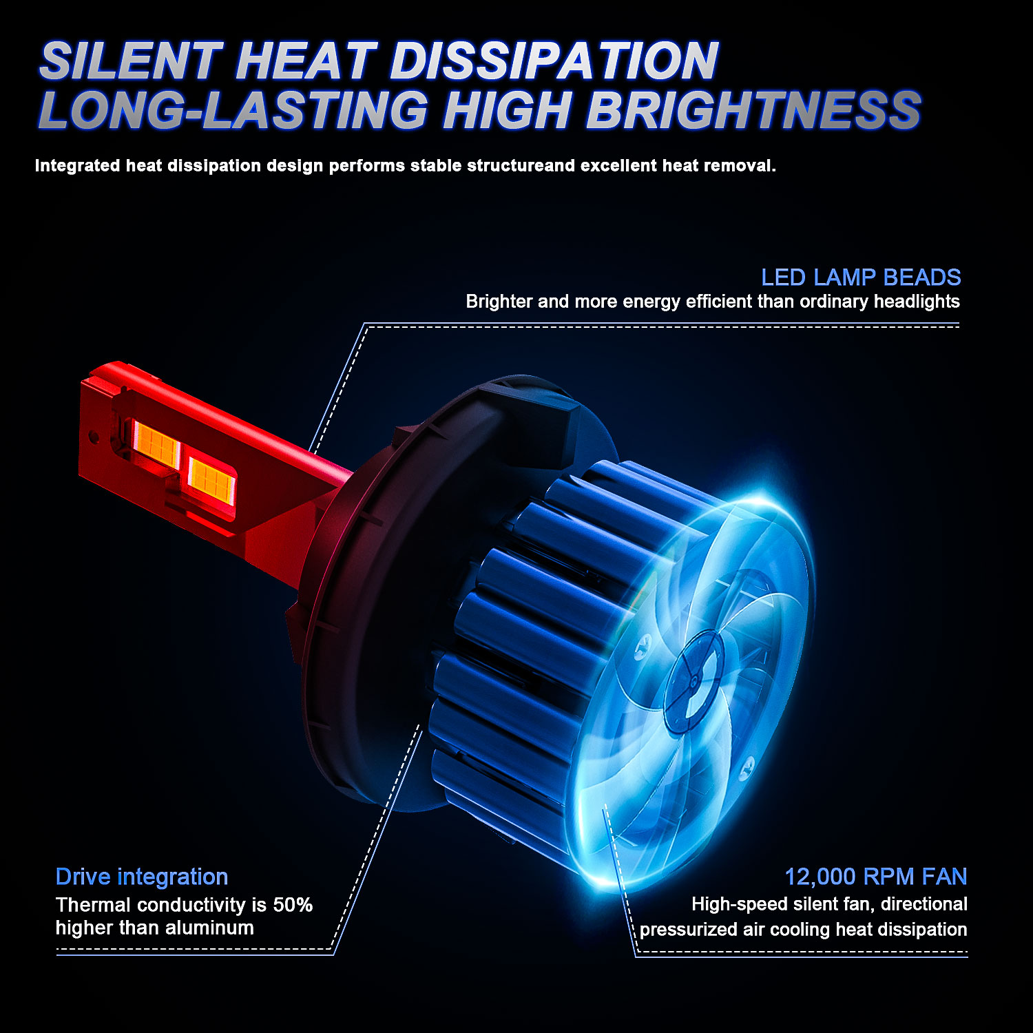 -Aluminum heat sink design,built-in automotive circuit to prevent electronic interference.