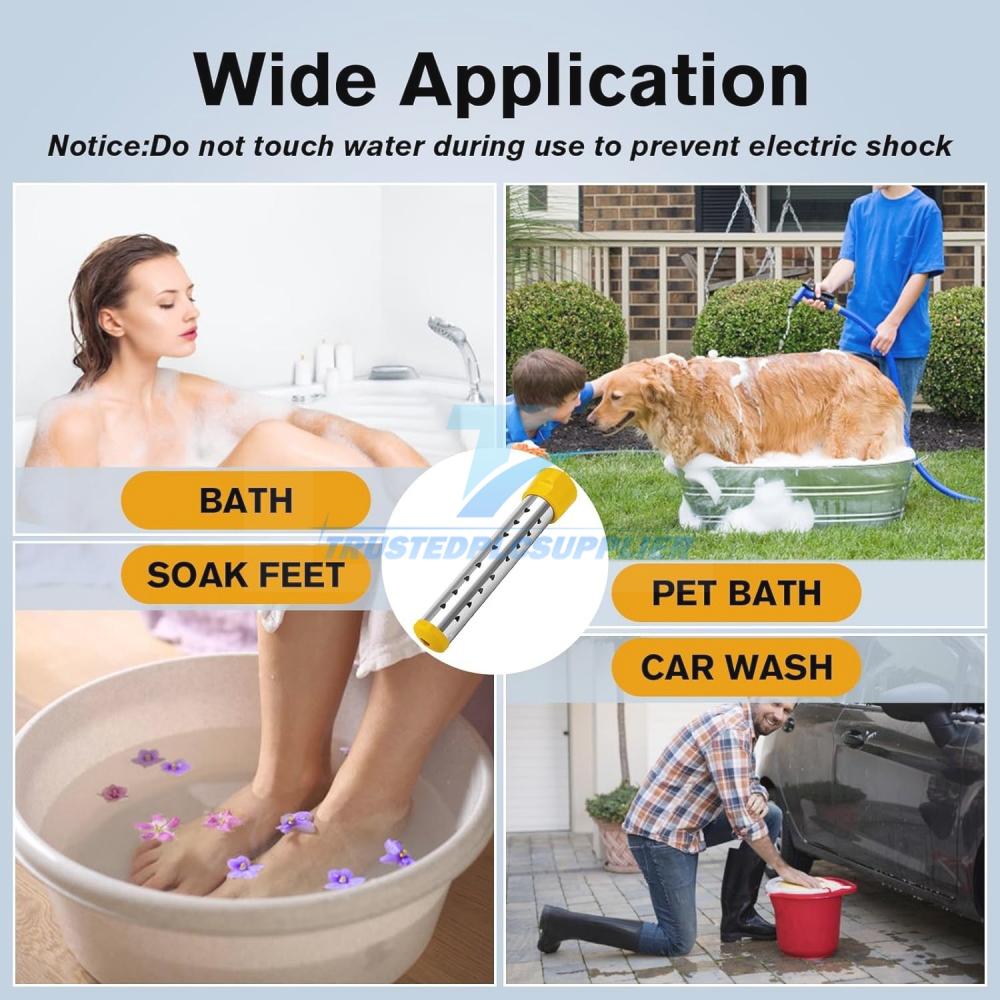 water heater adapts to any scenario. Use it in plastic buckets (5-15 gal), bathtubs, livestock troughs,