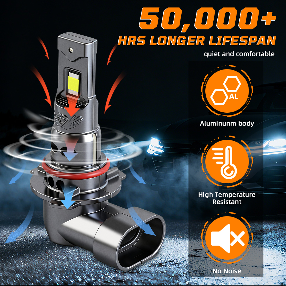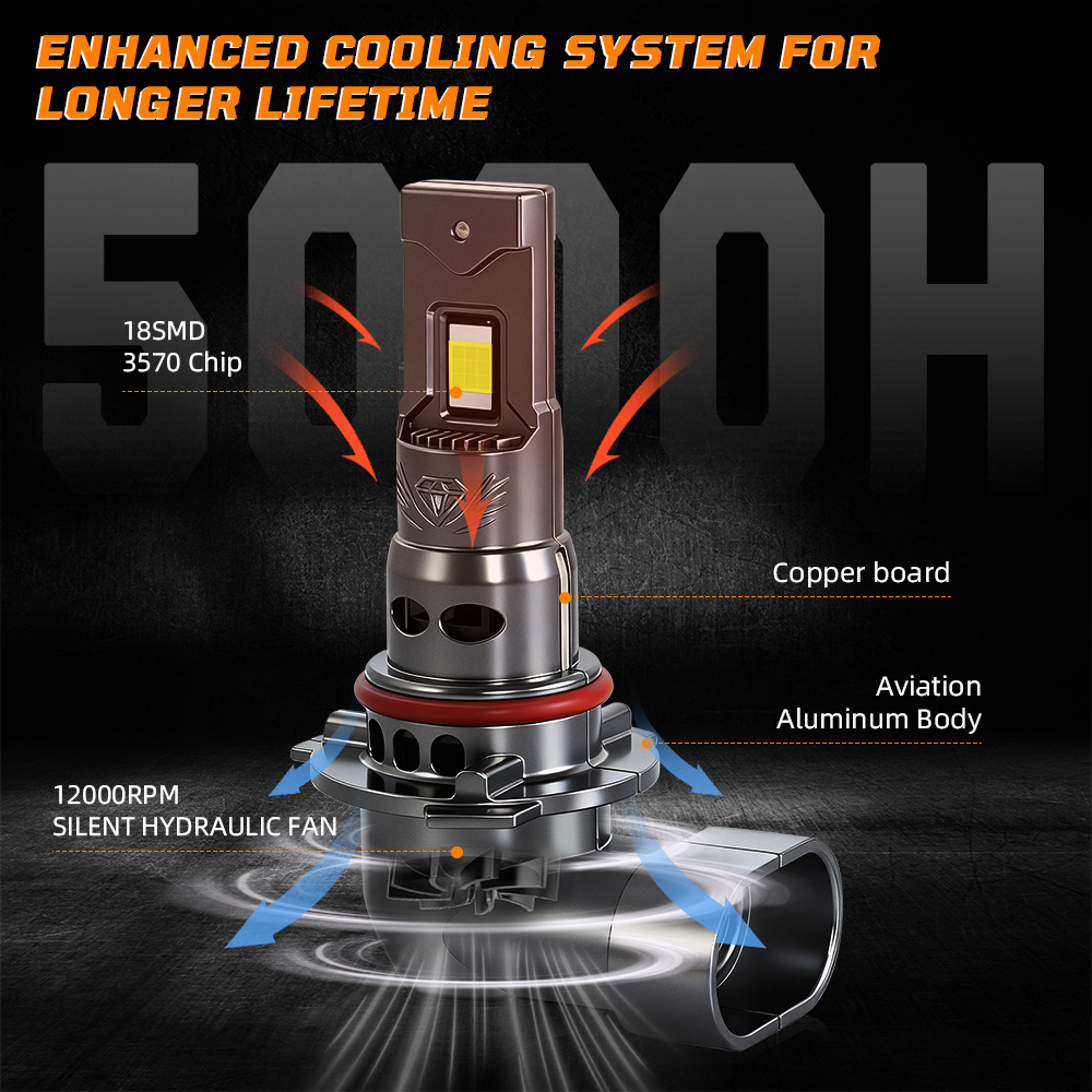 Our system utilizes dual vacuum refrigeration copper tubes to increase heat conduction speed and an integrated heat dissipation system with a high-speed rotating fan to reduce the temperature by up to 90℃. This ensures stable performance and prolongs the life of the bulb.