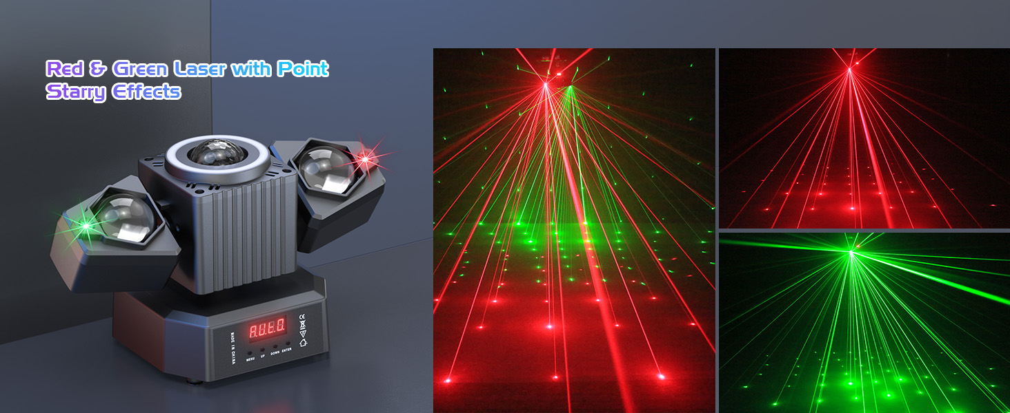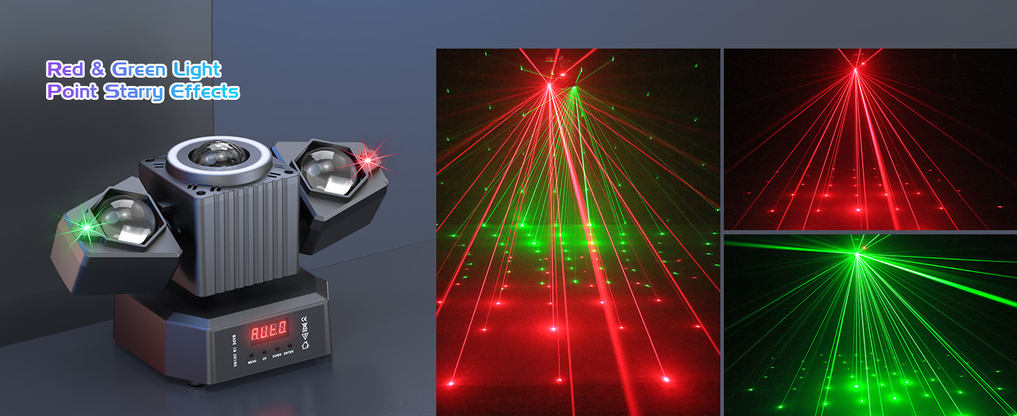 1.Stunning Integrated Effects: A perfect blend of beam, red-green laser, magic ball, and colorful light strip effects creates an extraordinary visual experience.