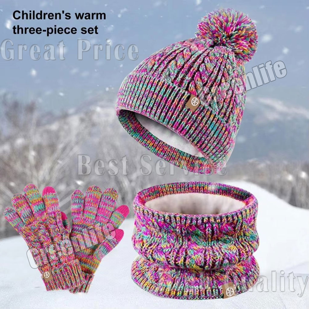 Introducing our Knitted Hat, Glove, and Scarf Set for kids! This winter accessory set is perfect for boys and girls aged 5-12 years old. The warm fleece lining fabric provides excellent elasticity and heat retention, making it suitable for different age groups.