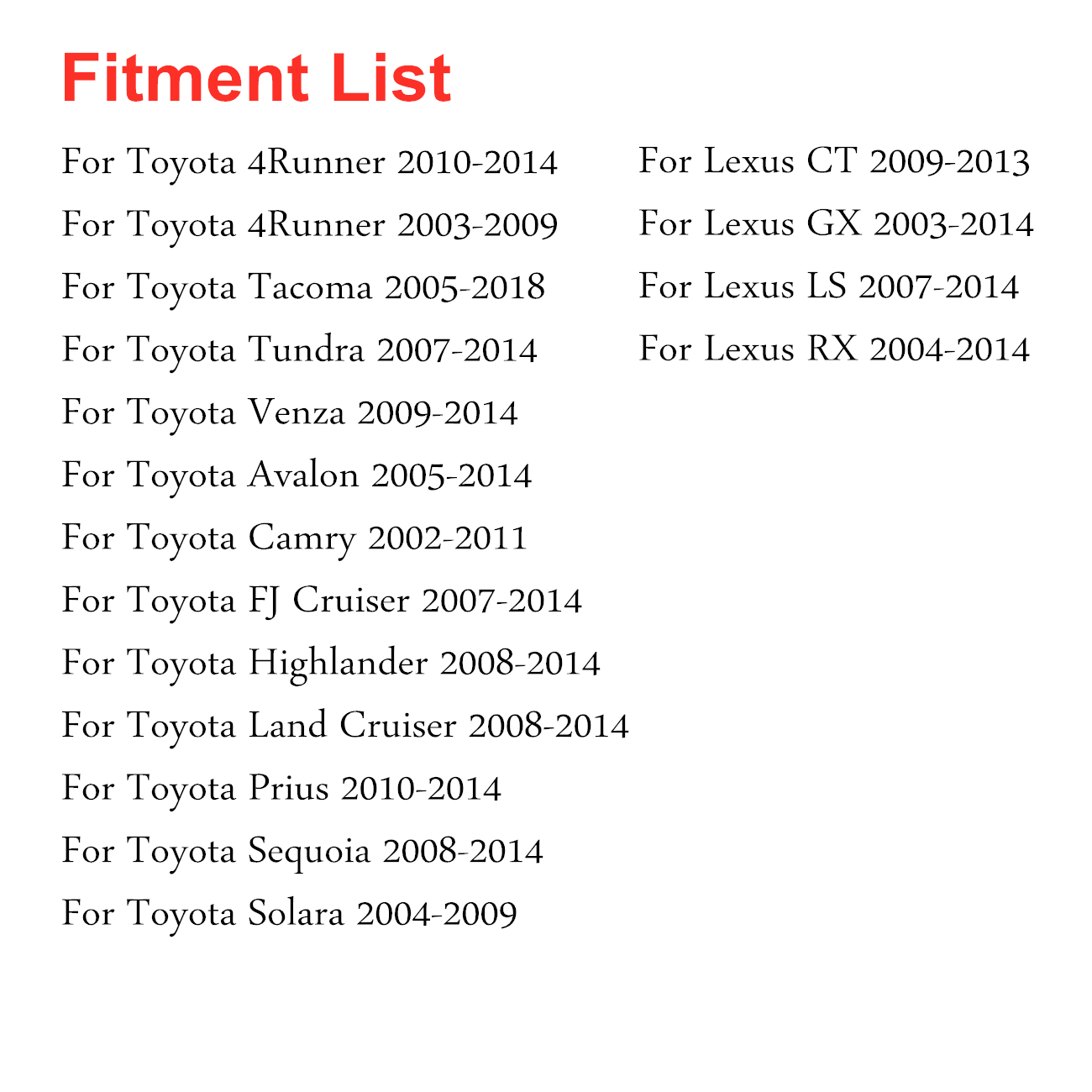 • For Toyota 4Runner 2003-2009