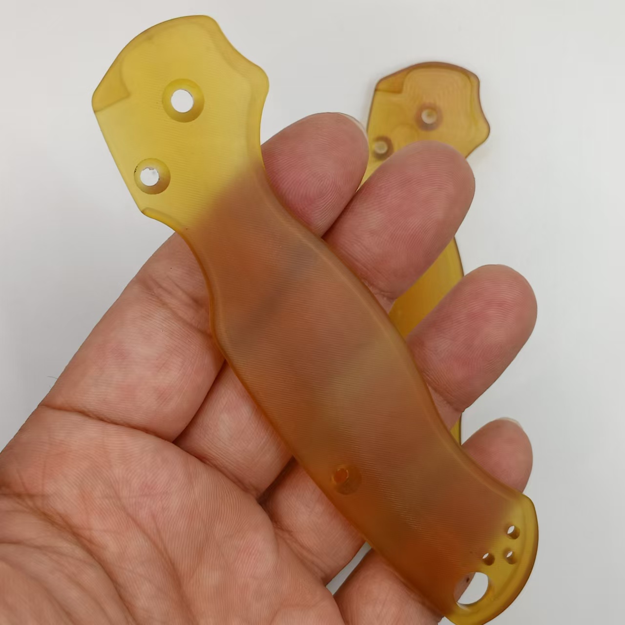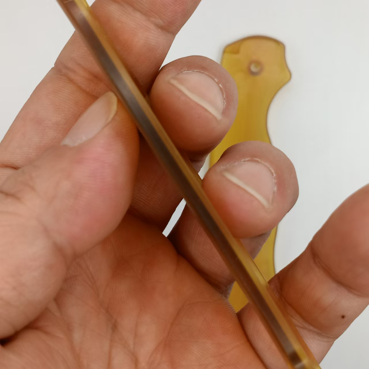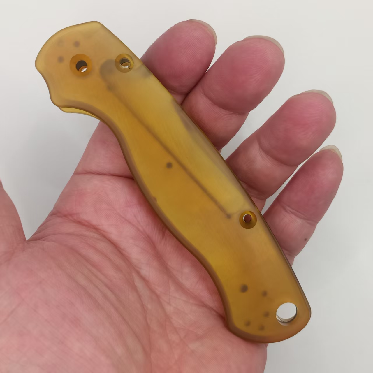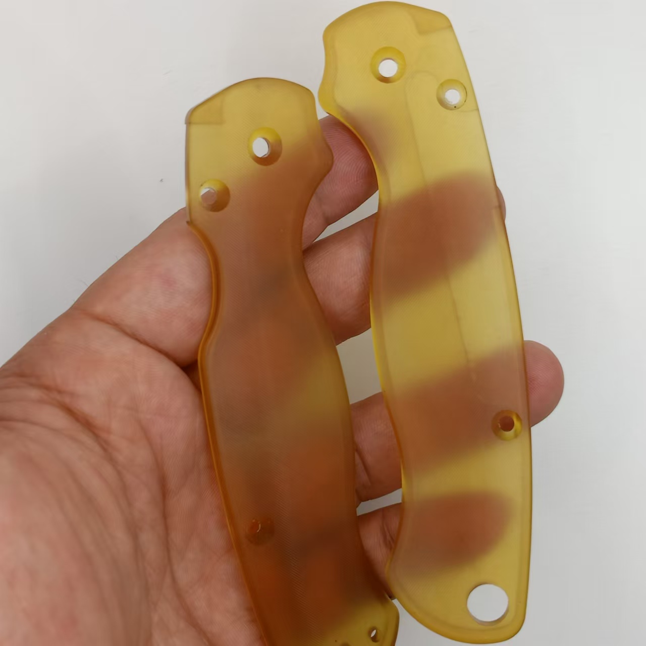 Aesthetic Appeal: The amber transparency adds a sophisticated, semi-translucent appearance that enhances your knife’s visual appeal.