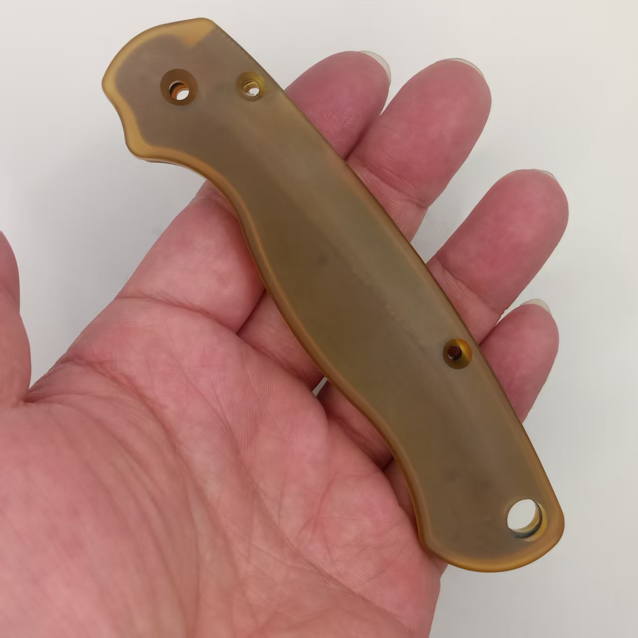 Upgrade your Spyderco Paramilitary 2 (C81 PM2) with these Smooth Amber Transparent PEI Handle Scales. Crafted from high-performance PEI (Polyetherimide) material, these scales combine lightweight durability with a sleek, translucent design, offering both functionality and a touch of elegance.