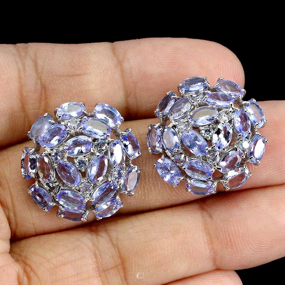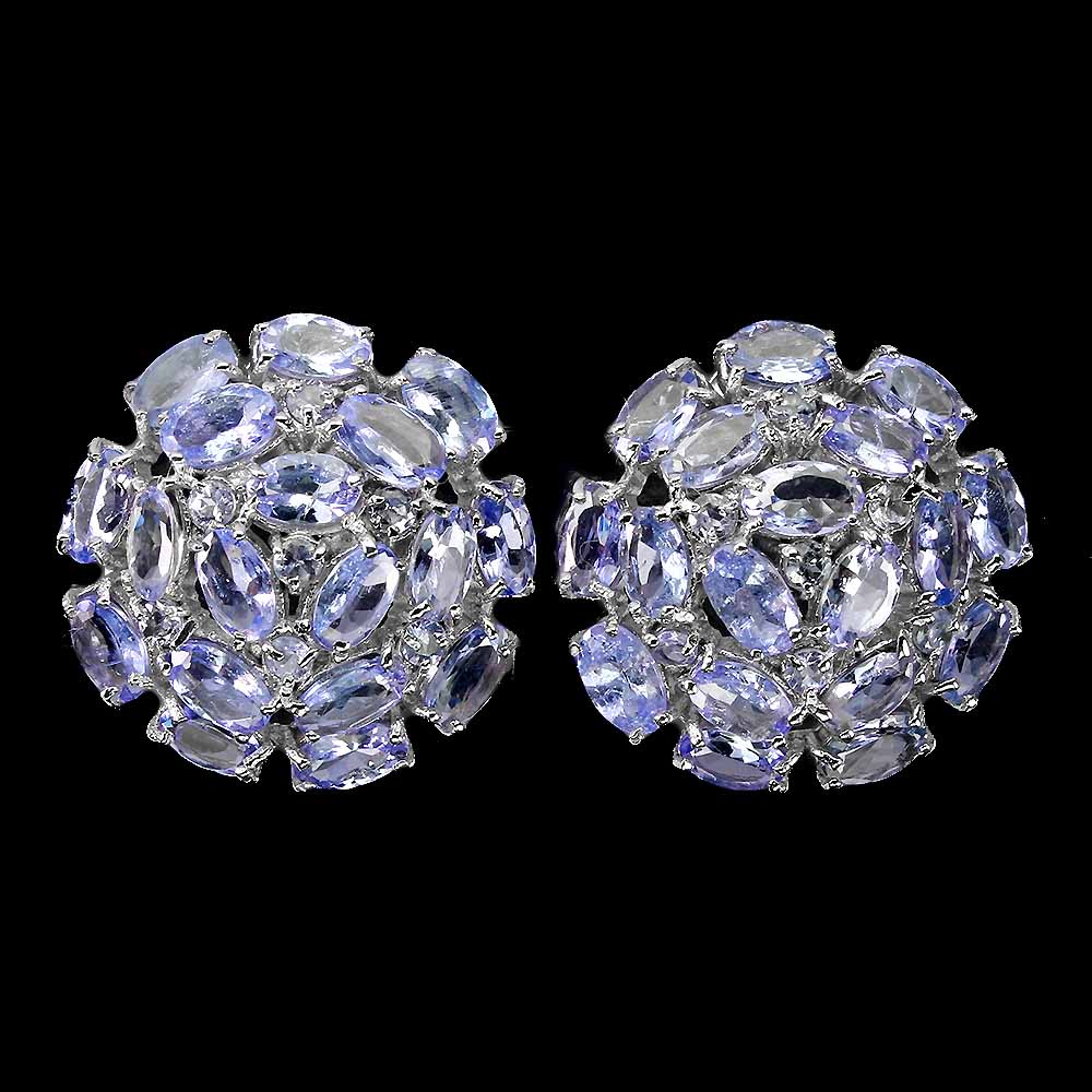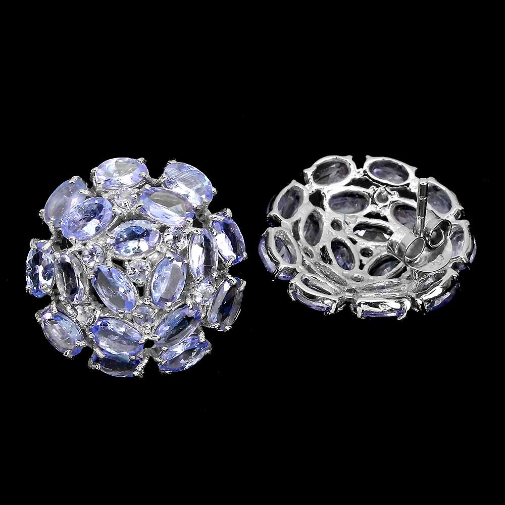 Unheated Oval Blue Tanzanite 14K White Gold Plate 925 Sterling Silver Earrings