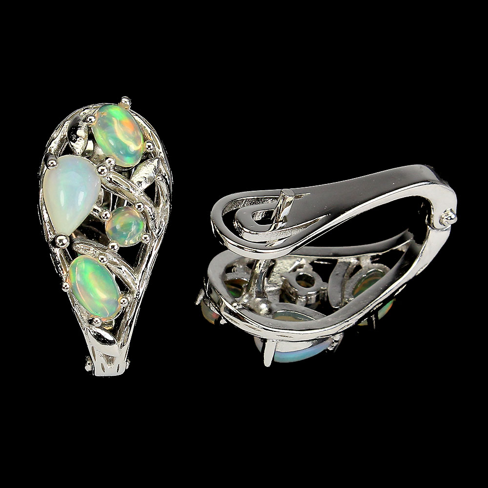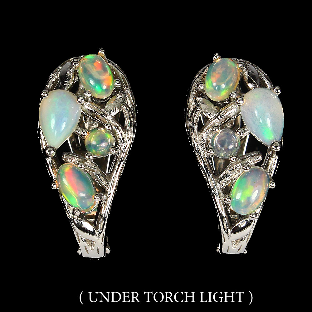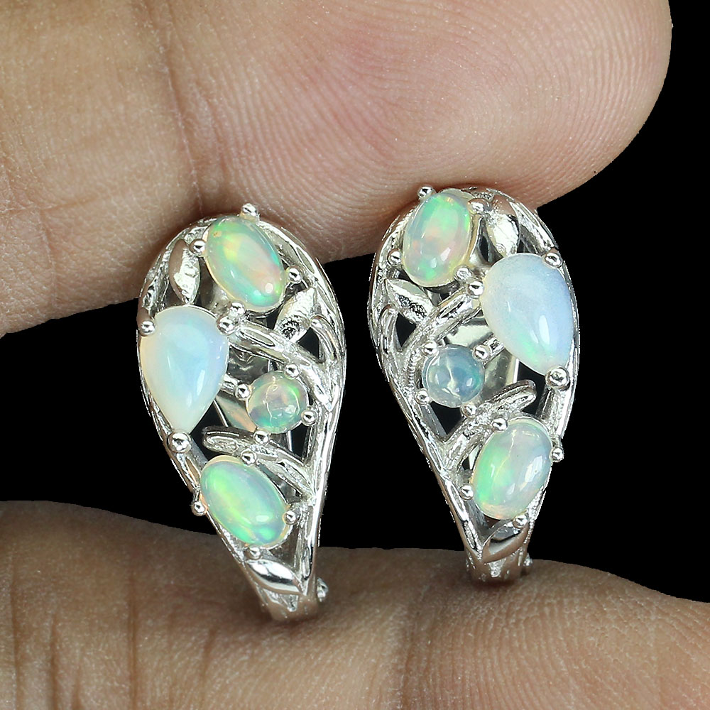 Unheated Pear Fire Opal Rainbow Full Flash 6x4mm 925 Sterling Silver Earrings