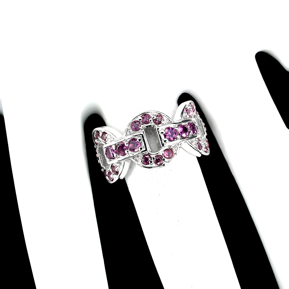 Unheated Round Rhodolite Garnet 14K White Gold Plate 925 Sterling Silver Ring 8