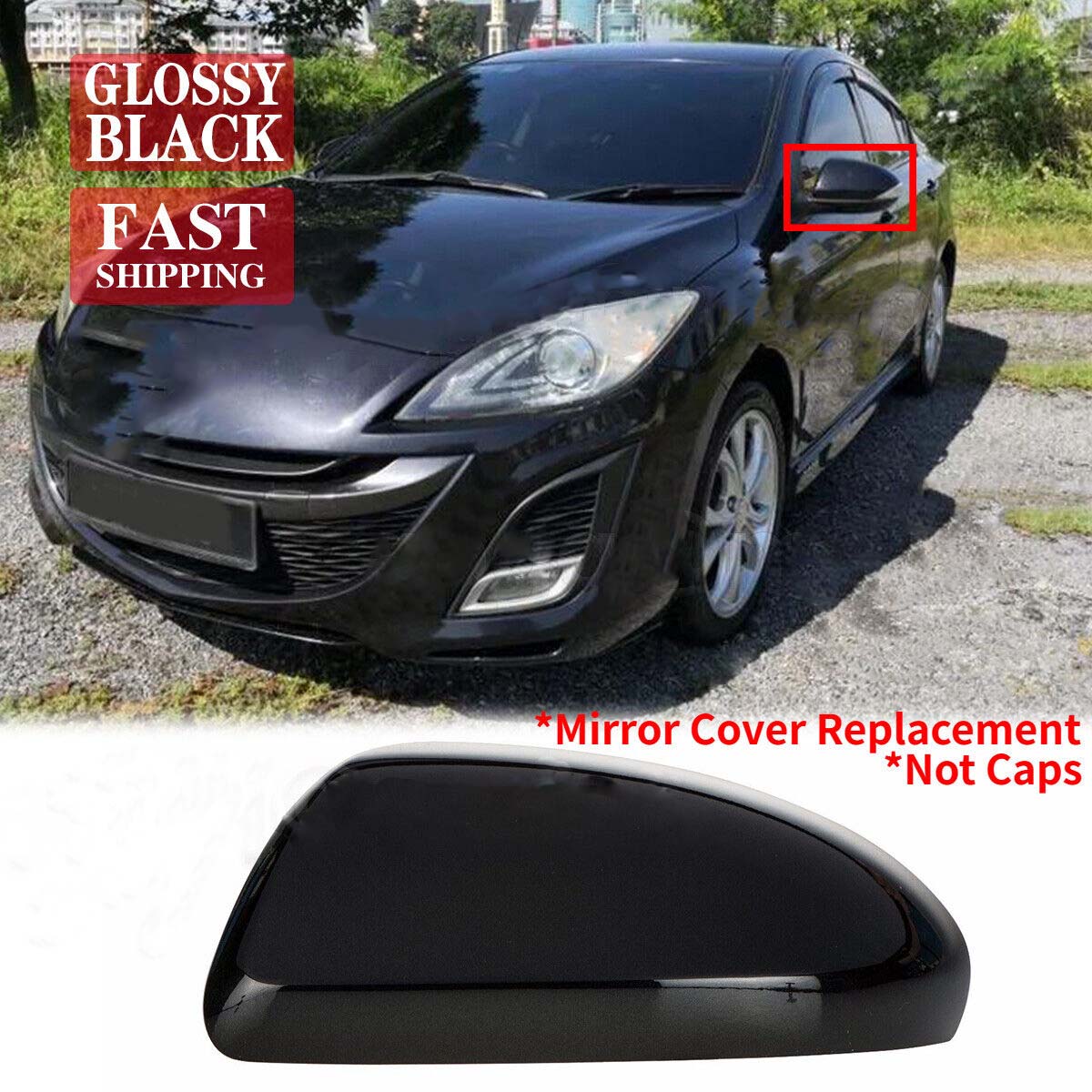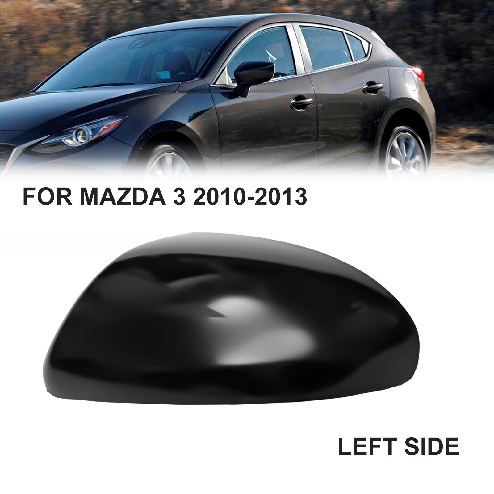 For Mazda 3 2010-2013 Black Left Driver Side Mirror Replaced Housing Cover Cap