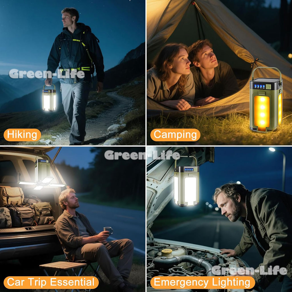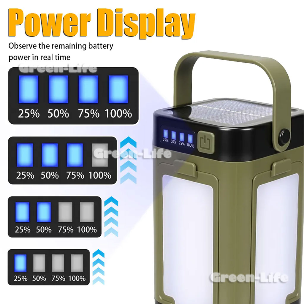 3. Multi-Functional Use: This solar camping lantern doubles as an emergency power source for your phone and serves as a reliable portable flashlight during camping trips.