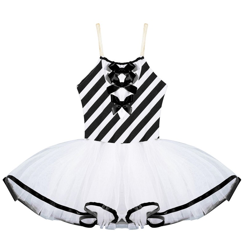 Adjustable straps, stripes print, bowknot adorned, mesh tutu dress, cami dress.