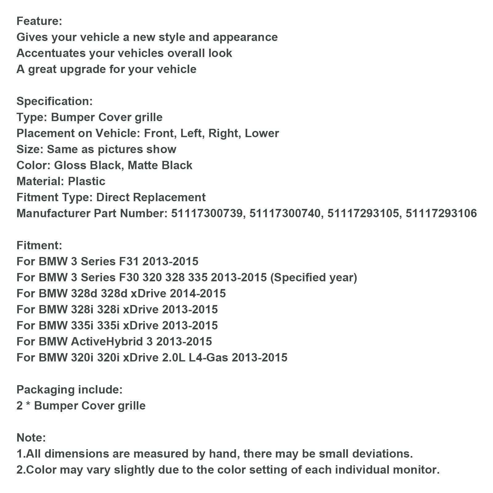 For BMW 3 Series F30 320 328 335 2013-2015 (Specified year)