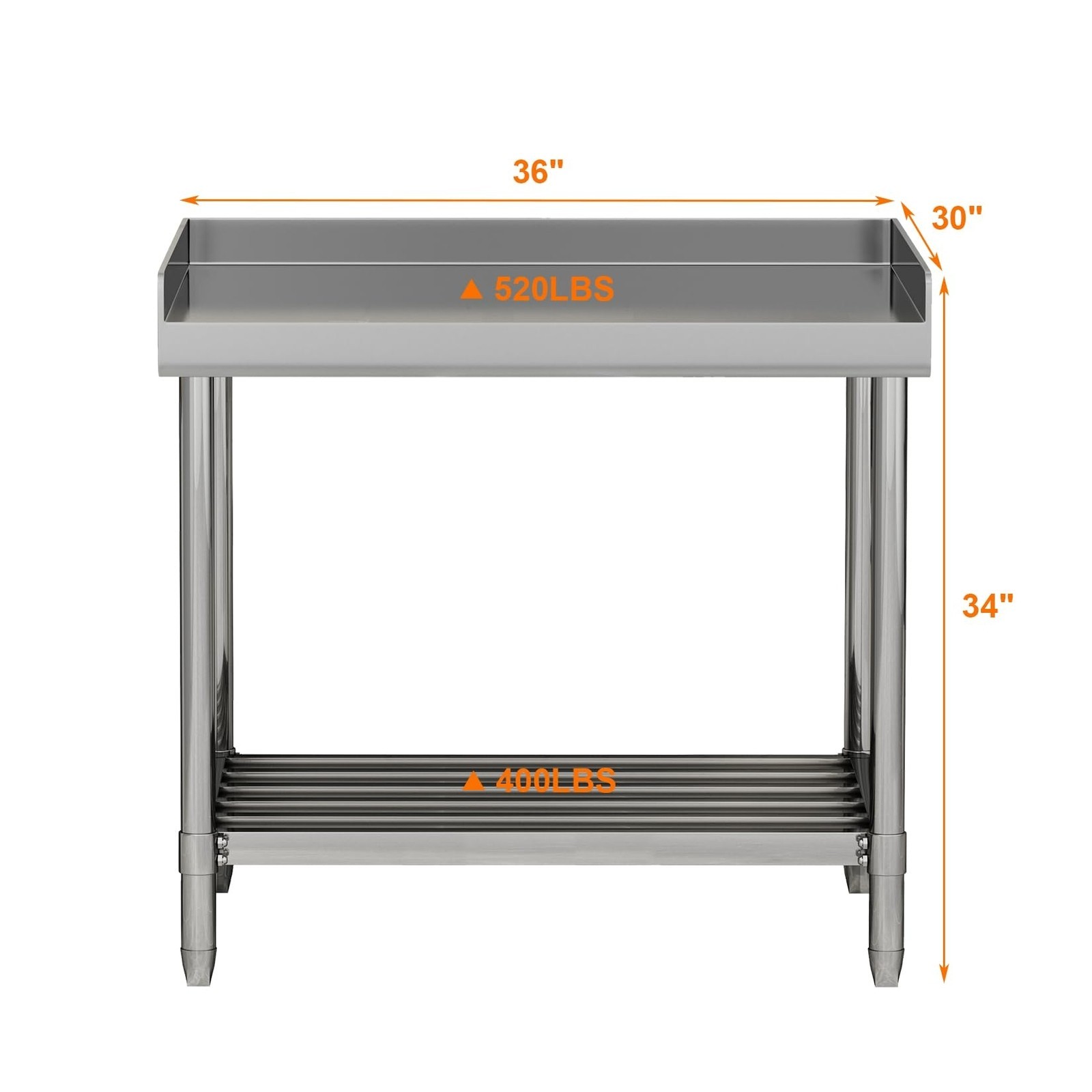 ---High Bearing Capacity: This kitchen prep table has a 520 lb. top shelf weight capacity and 400 lb. undershelf weight capacity for extra strength. You can store everything you want without shaking.