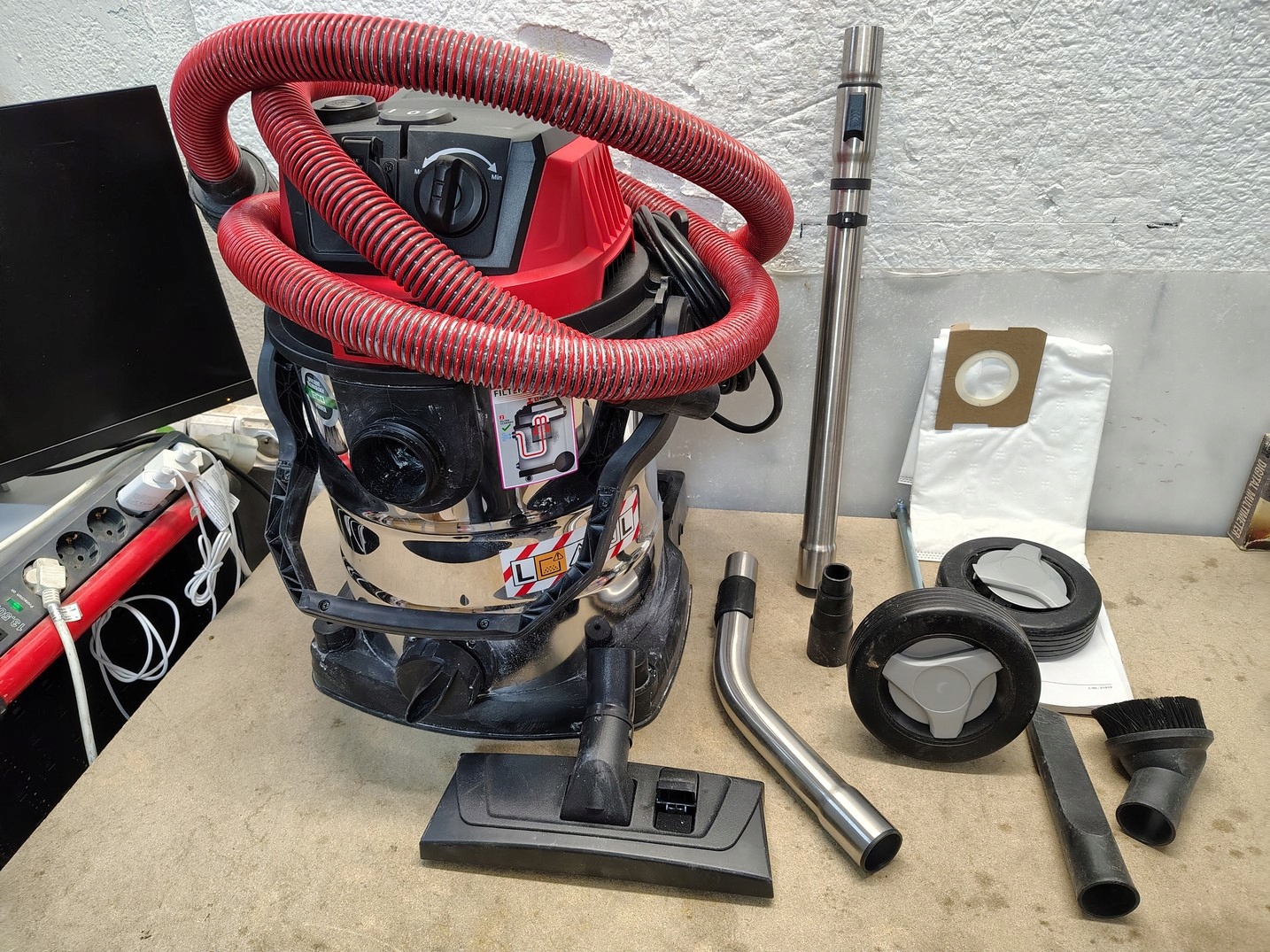Er ist ein praktischer Helfer für Reinigungsarbeiten auf der Baustelle, in der Werkstatt, im Hobbyraum usw.