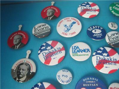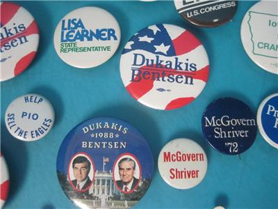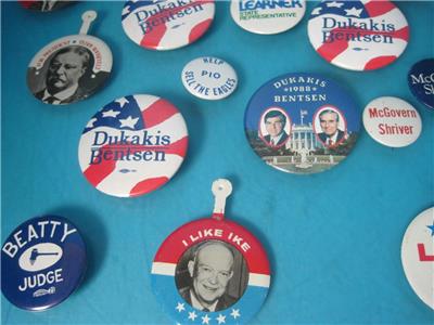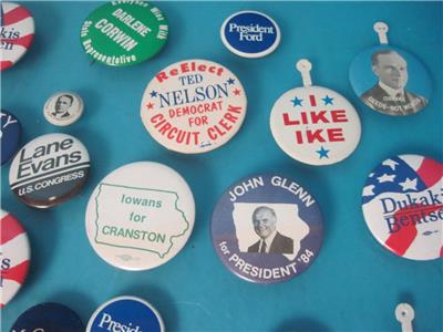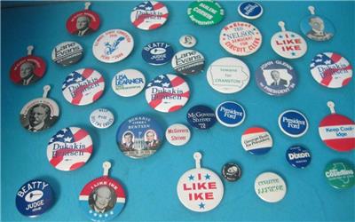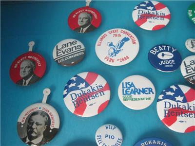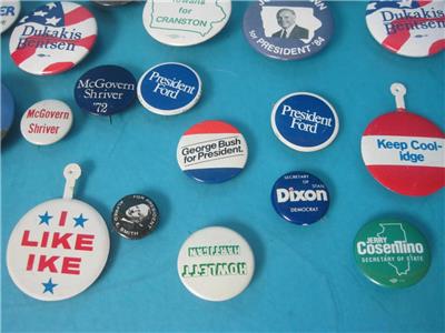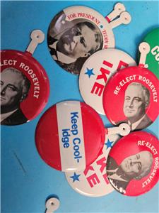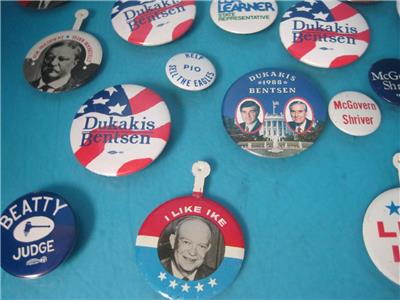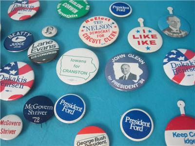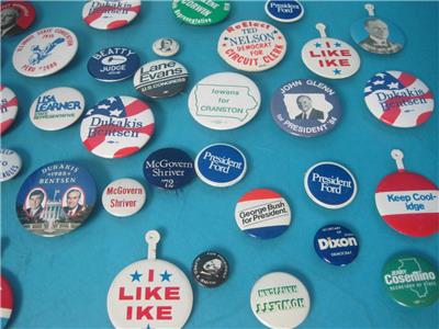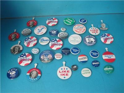 THIS IS FOR THE LOT OF 36 VINTAGE POLITICAL PINS PICTUED, ALL ARE IN GOOD SHAPE!