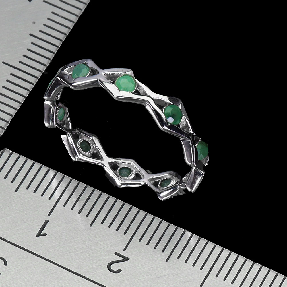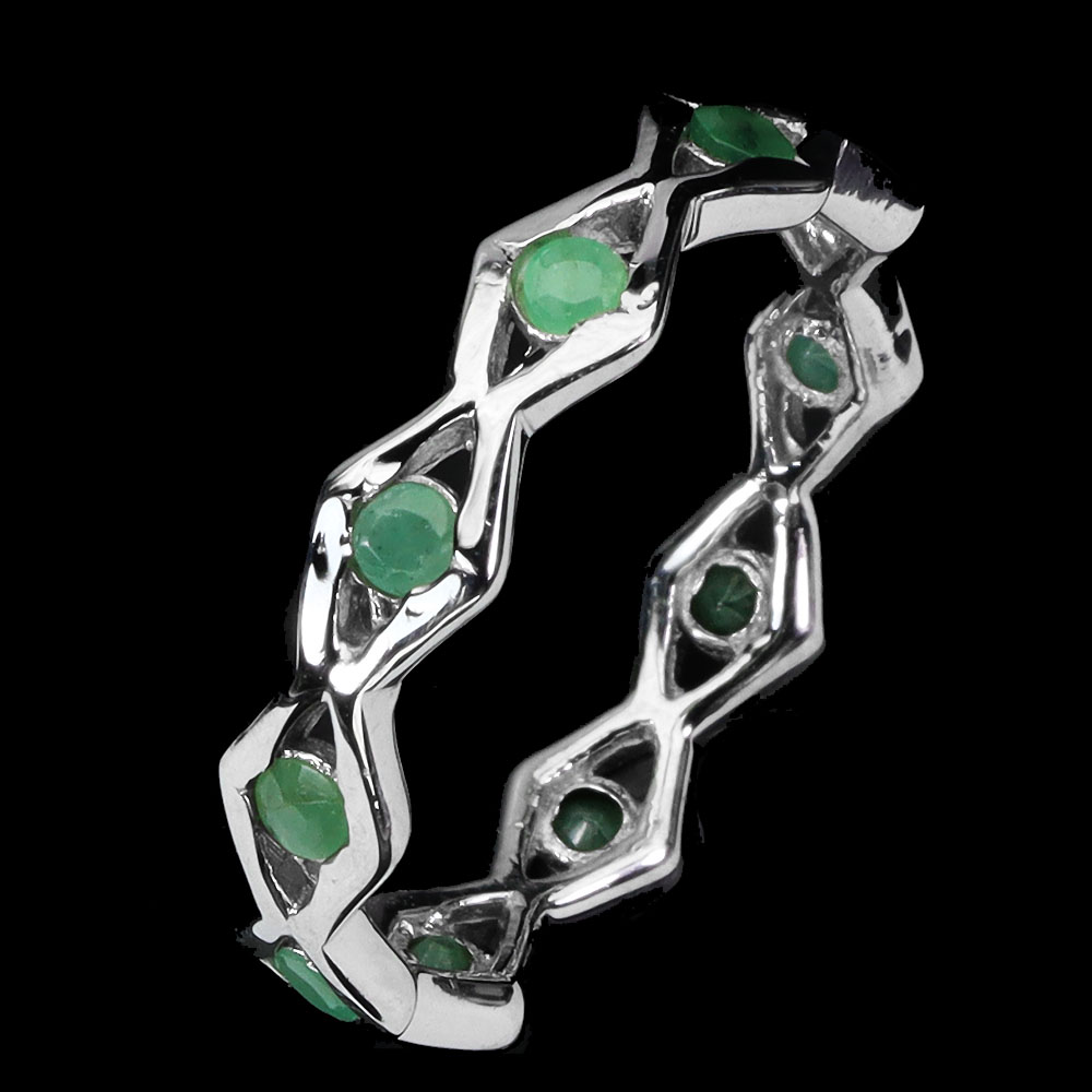 925 Sterling Silver Ring Round Emerald Natural Gemstone Jewelry Size 7