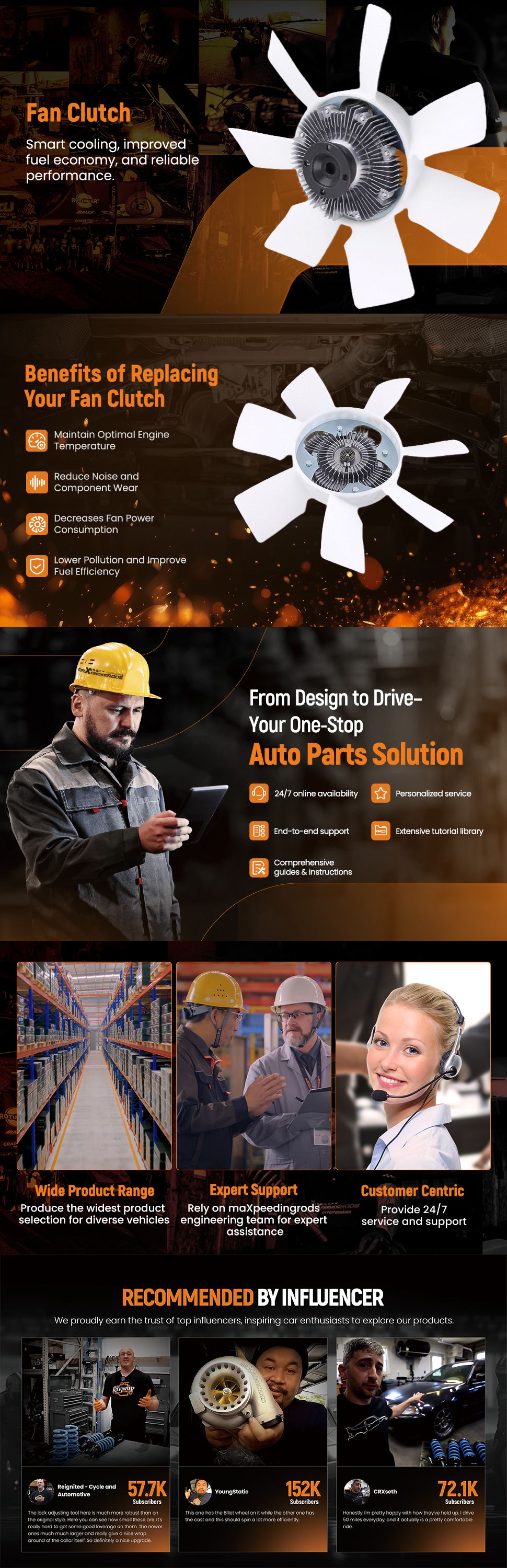 Provides an intelligent cooling solution that automatically adjusts the fan speed based on the engine temperature. The fan clutch engages the fan only when necessary, ensuring optimal cooling efficiency while minimizing energy consumption and engine drag. This intelligent system helps maintain the engine at an ideal operating temperature, enhancing overall performance and fuel economy.