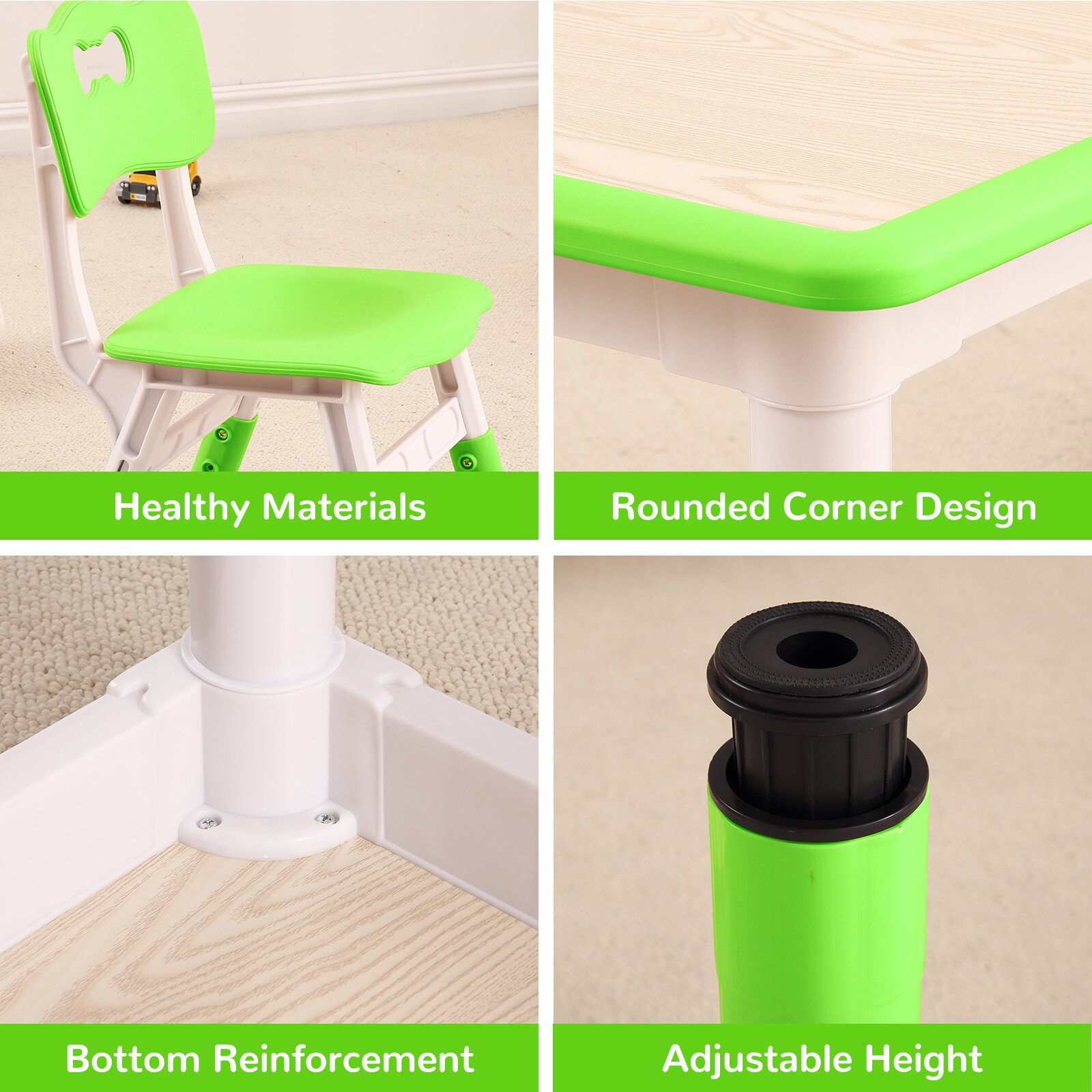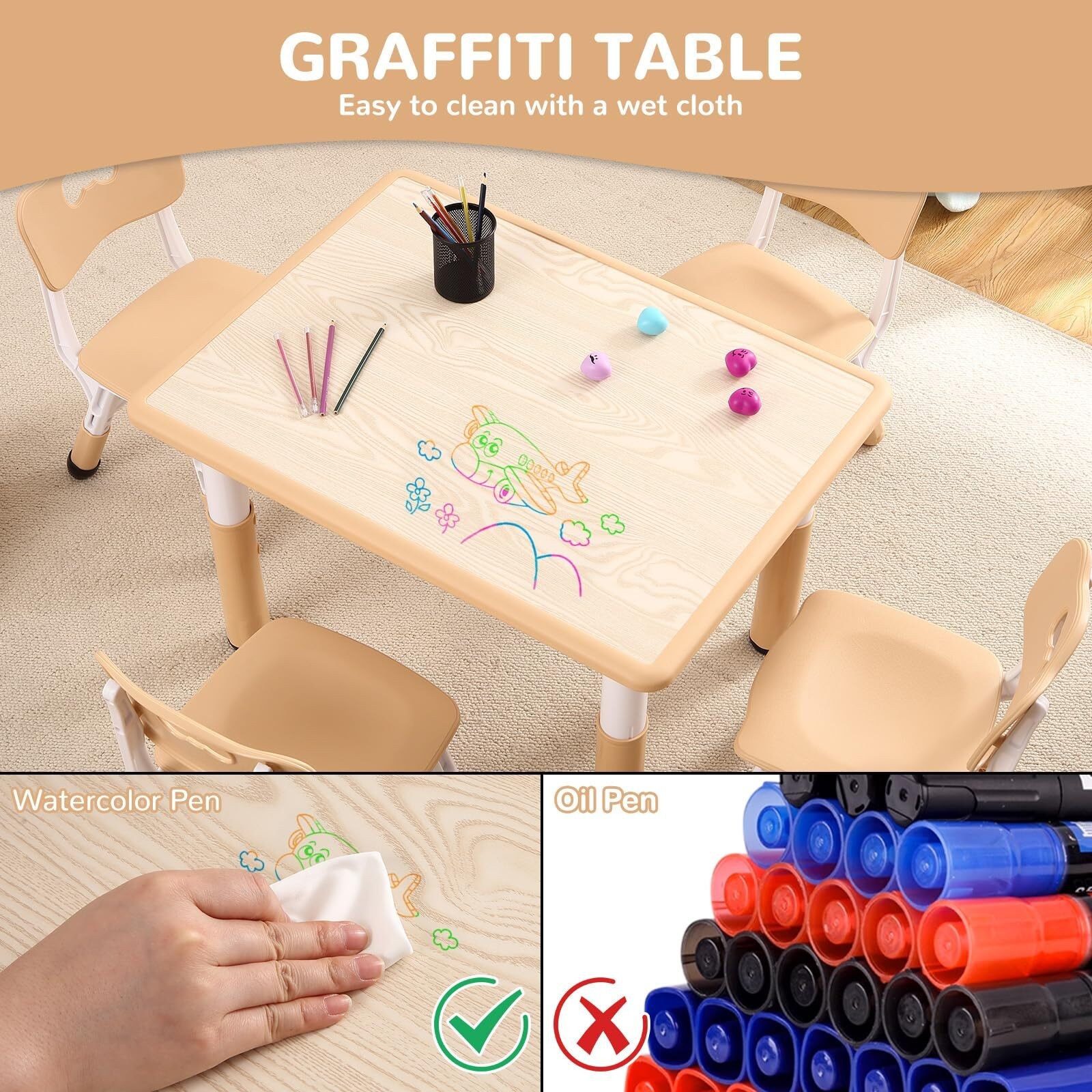 【Multifunctional Desk and Chair Set】Kids Desk and Chair Set Includes 1 Desk and 4 Chairs,it is great for eating, activities, drawing and so much more,it's very comfortable for baby who likes to sit and just enjoy the view of outside,provides a relaxing space to unleash artistic potential.