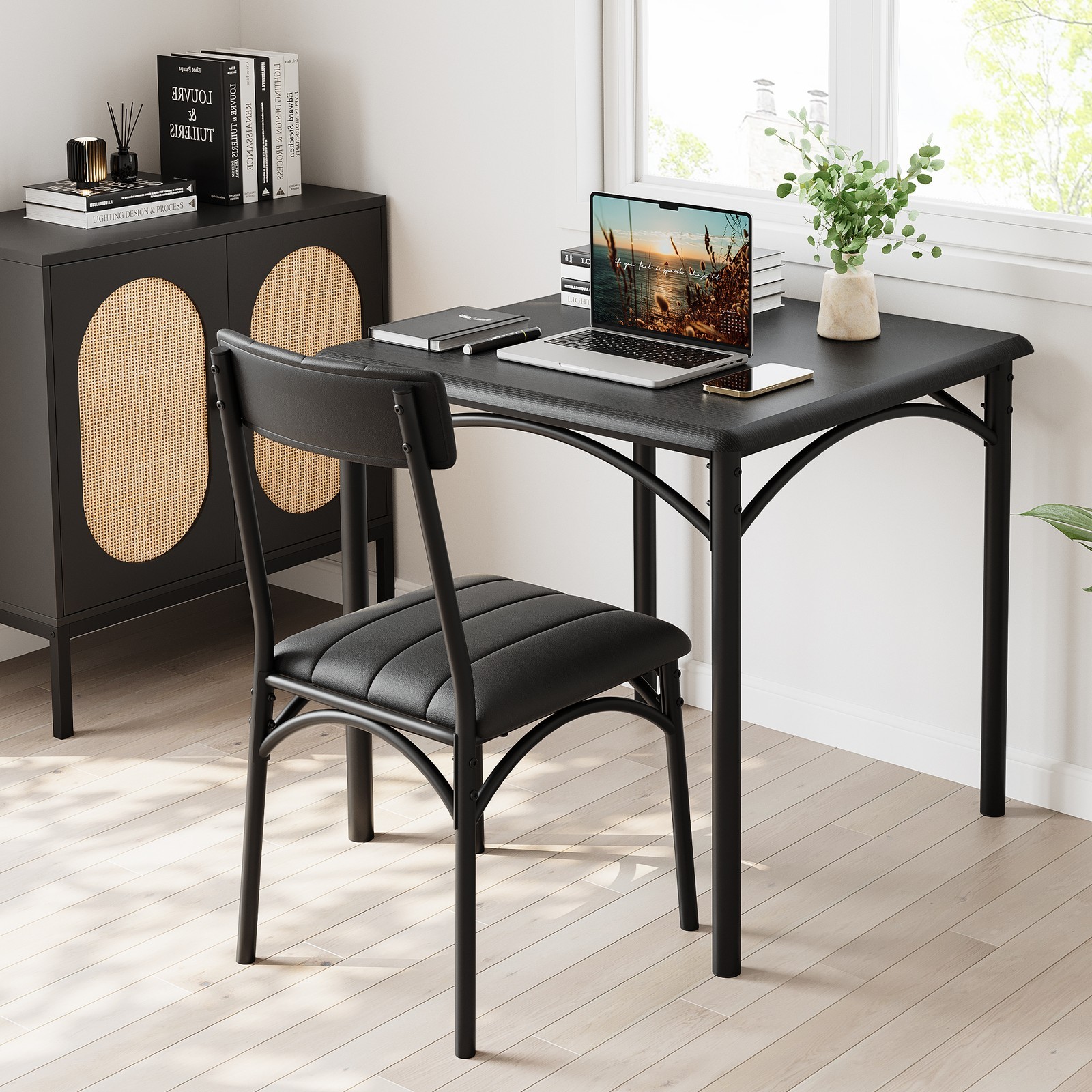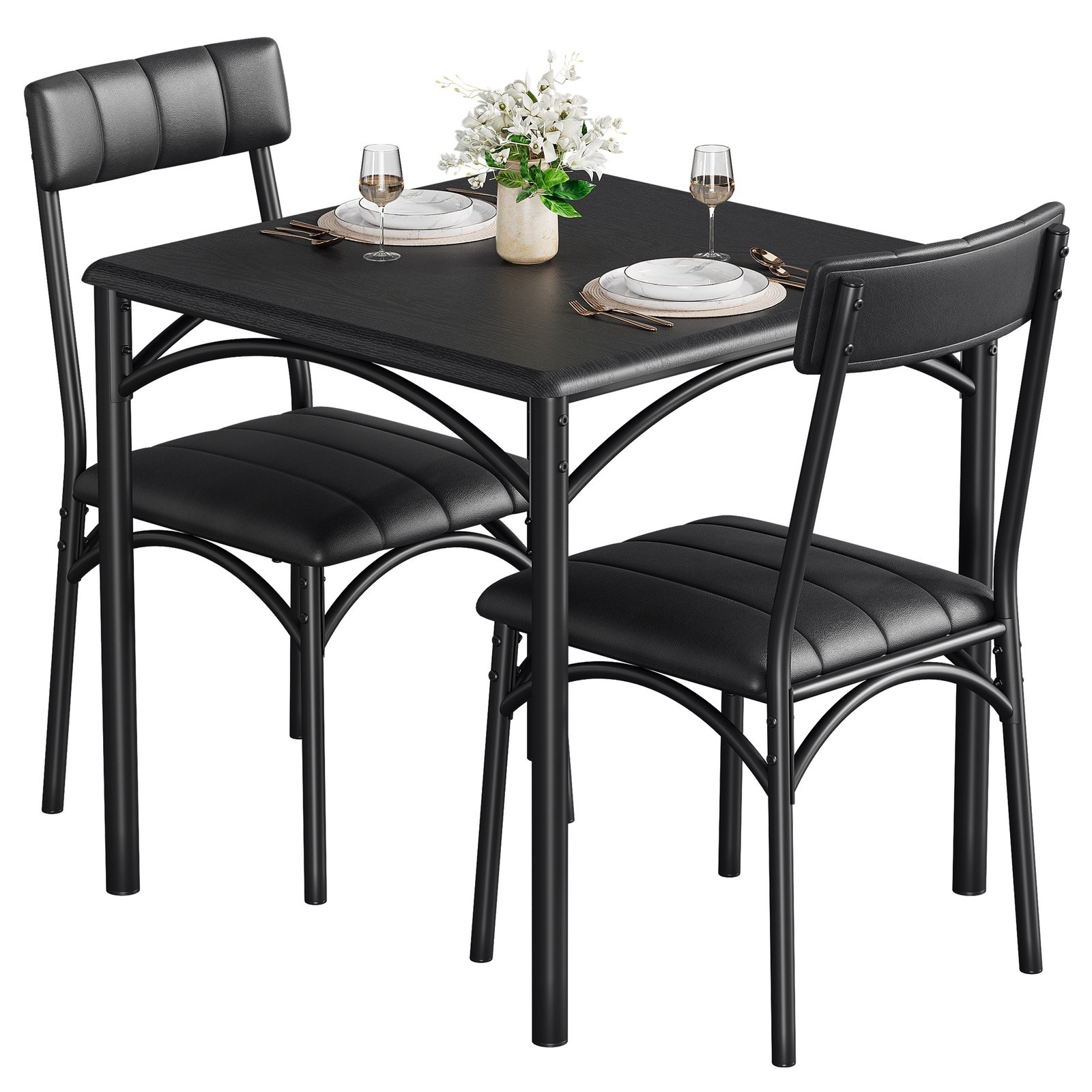 Sturdy Frame: This rustic black kitchen table set with a metal strong frame, which offers a longer service life and excellent stability. Constructed of high-grade MDF board and thickened steel frame and pipe wall, this table set is long-lasting and you can count on it to be a favorite for years to come. The U-shaped frame of the base makes this dining chair more sturdy and durable. Chairs load-bearing reaches 300lbs.