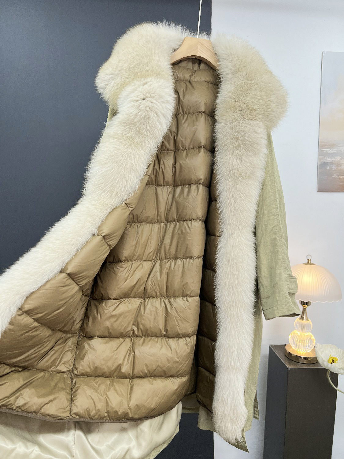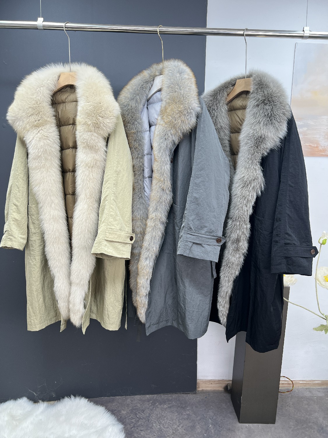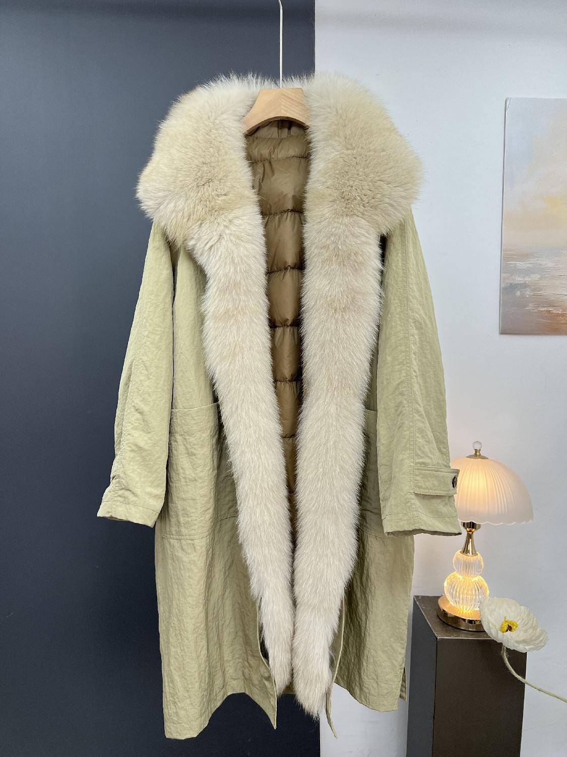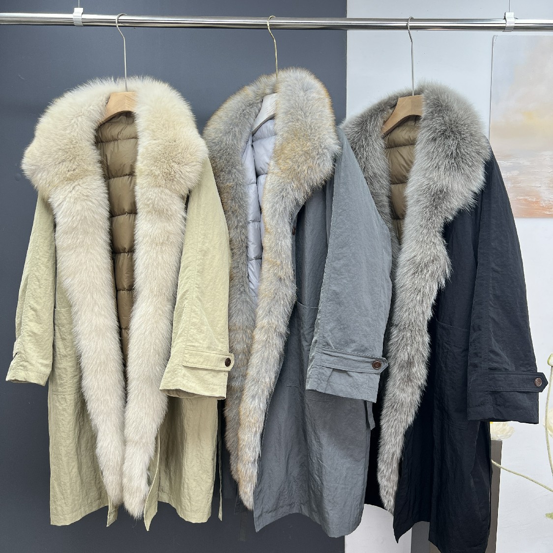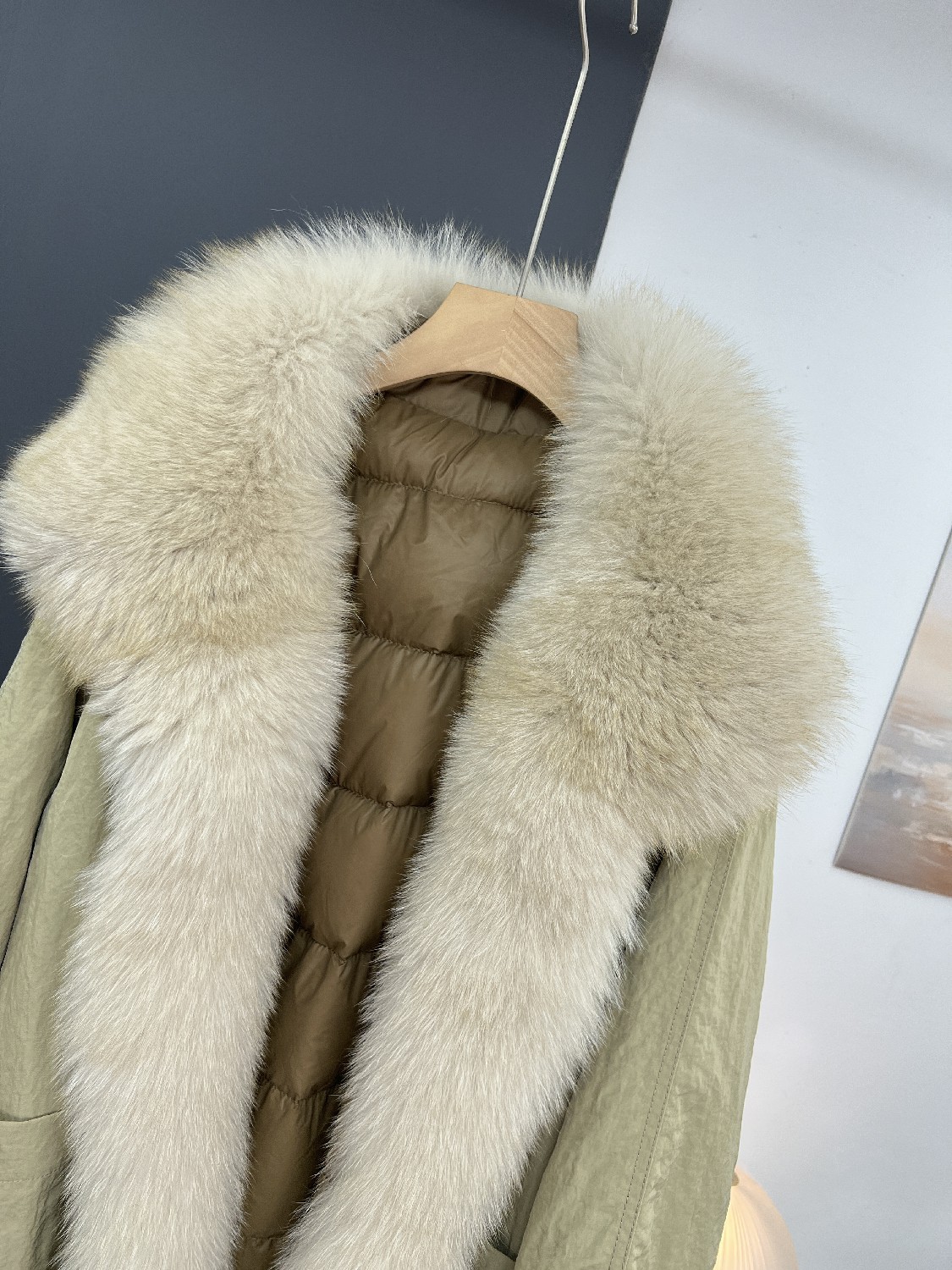 Winter Korean Coat Parker Jacket Down Womens Goose Down Fox Fur Collar Jackets
