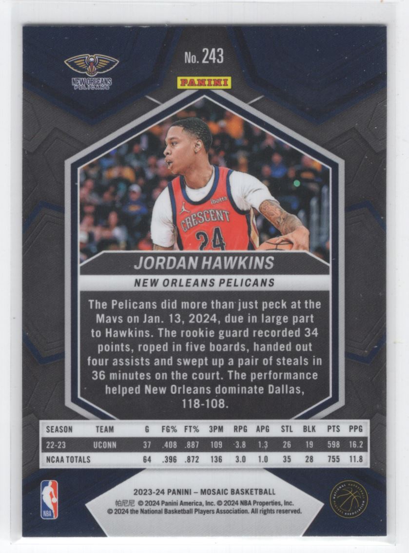 #243 2023-24 Mosaic BASE * Jordan Hawkins RC New Orleans Pelicans