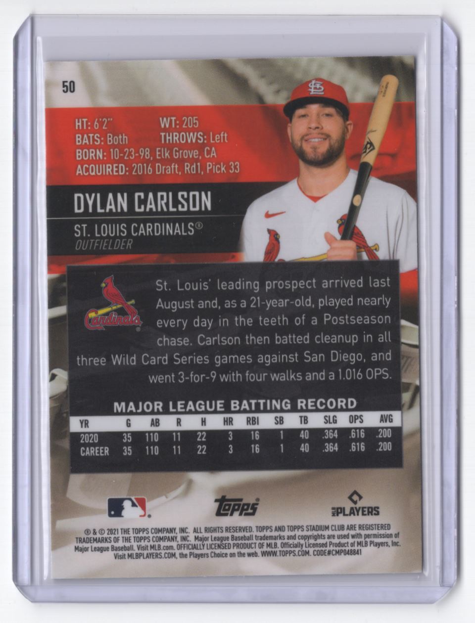 2021 Stadium Club Dylan Carlson Rookie St. Louis Cardinals #50
