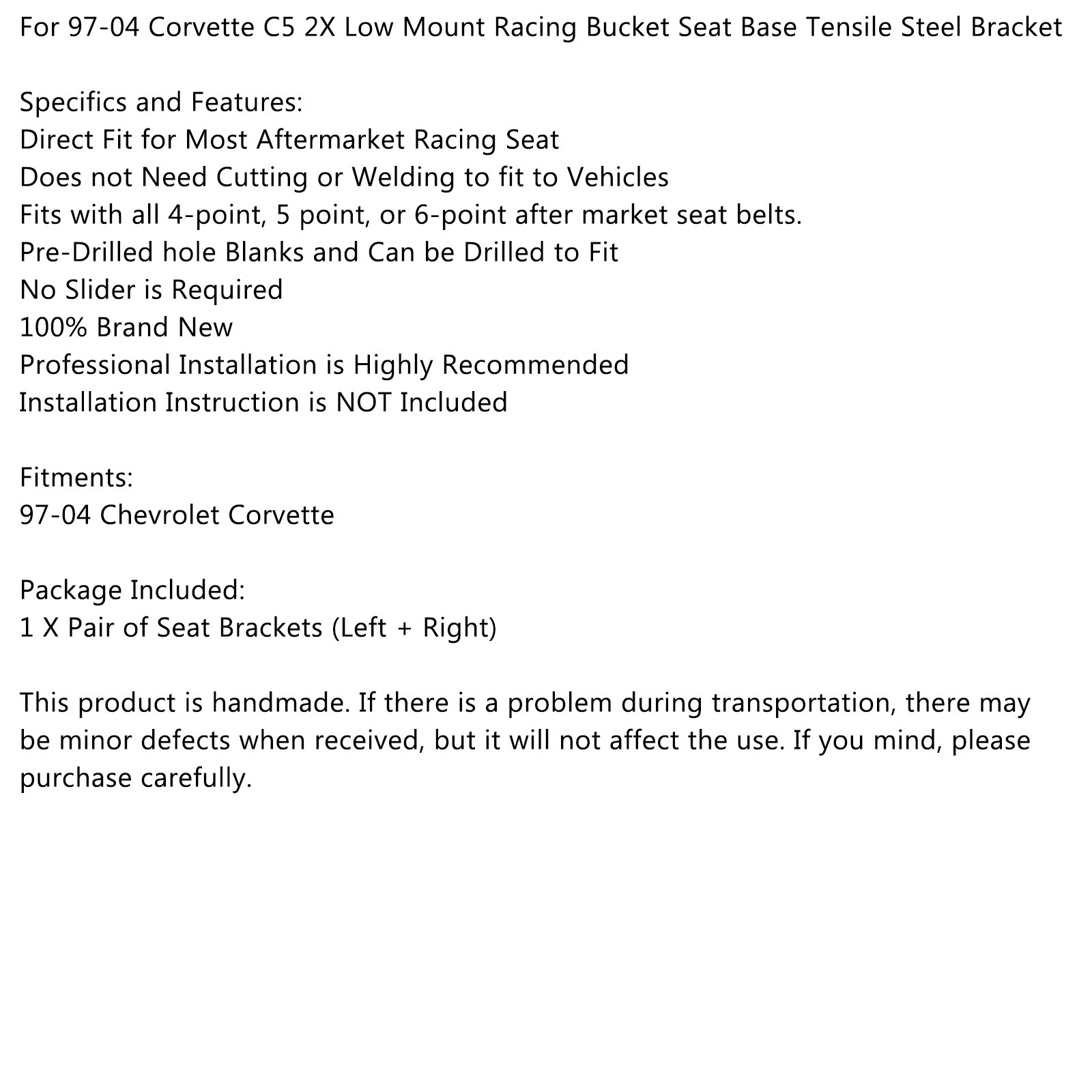 For 97-04 For Corvette C5 2X Low Mount Racing Bucket Seat Base Tensile Steel Bracket