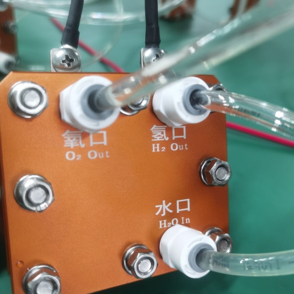 Model 20A-12V-600ML Dual Hydrogen Constant current 20A Voltage range 12V Input Structure Positive / Negative Hydrogen production 600ml/min Oxygen production 300ml/min Effective area of battery 80cm2 Current density≥1A/cm Single cell voltage 1.7V-2.2V Number of electrodes 4PCS Membrane electrode Nafion Proton Exchange Membrane (PEM) Hydrogen production pressure 0-2MPa Operating pressure ≤2MPa Inlet water conductivity ≤5 us/cm Inlet water temperature 10-50℃ Inlet water inlet British 2 points Hydrogen outlet 2 points imperial Oxygen outlet British system 2 points Working temperature 10-60℃ Water volume ≥1200mL/min Service life ≥ 10000 h (4-5 years) Water tank volume ≥2200 ml Appearance size length * width * height = single 88 * 84 * 90mm