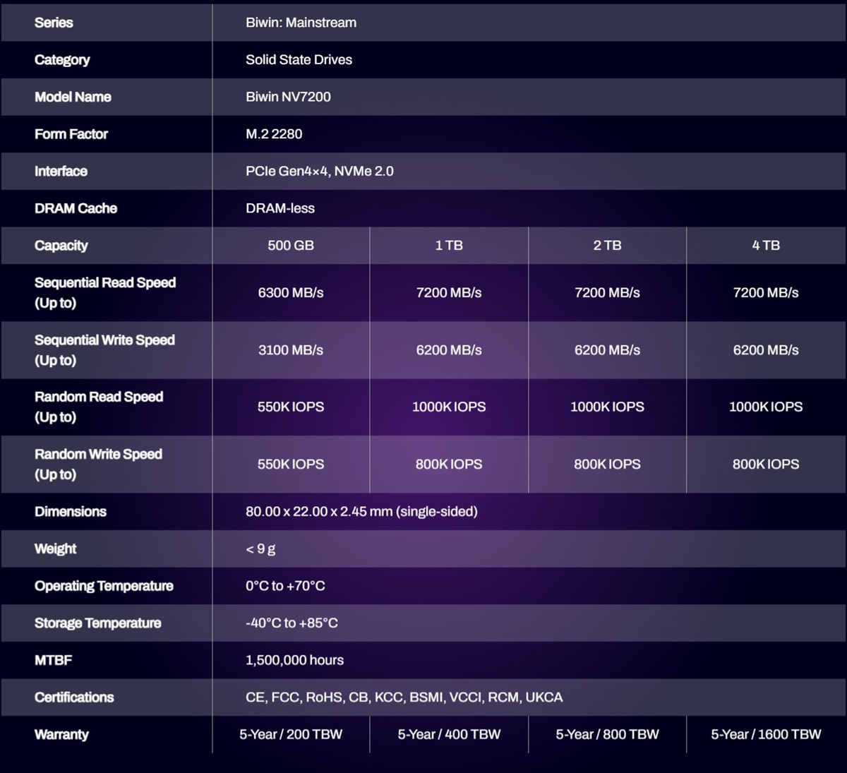 SPECIFICATIONS