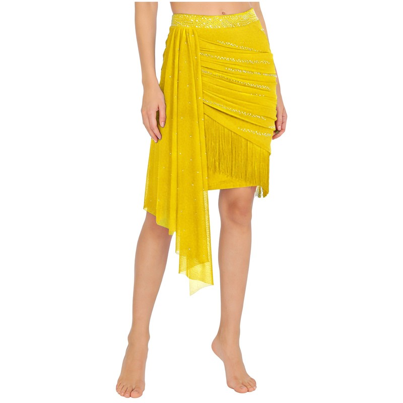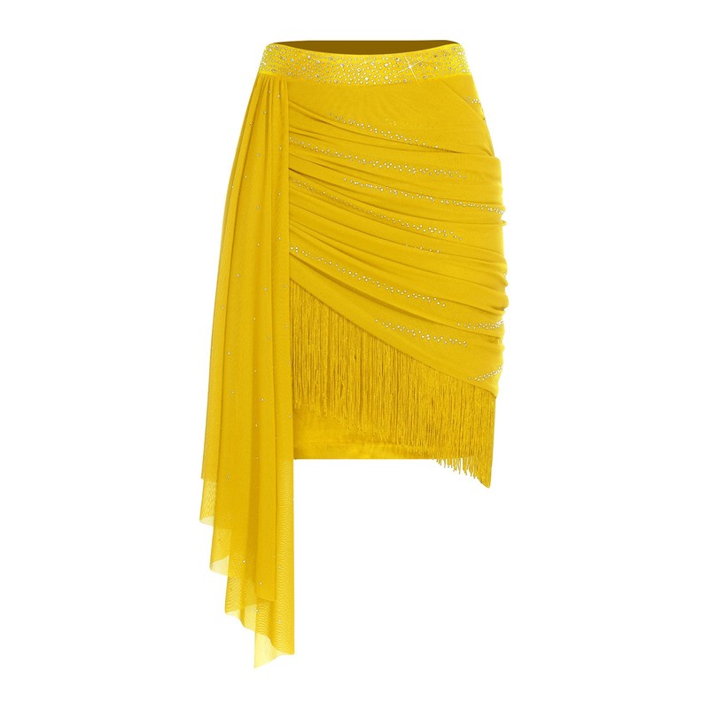 Made from a blend of nylon, polyester, and spandex, this skirt is stretchy, breathable, and comfortable, providing a flexible movement experience for dancers.
