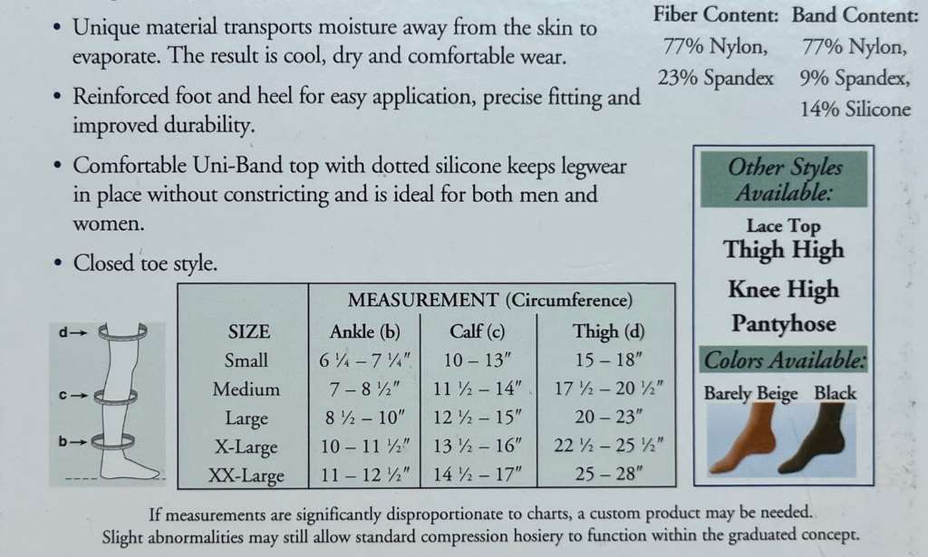Comfortable, Moderate Support Graduated Compression, 20-30 mmHg, mid Thigh Highs with a Uni-Band Top.