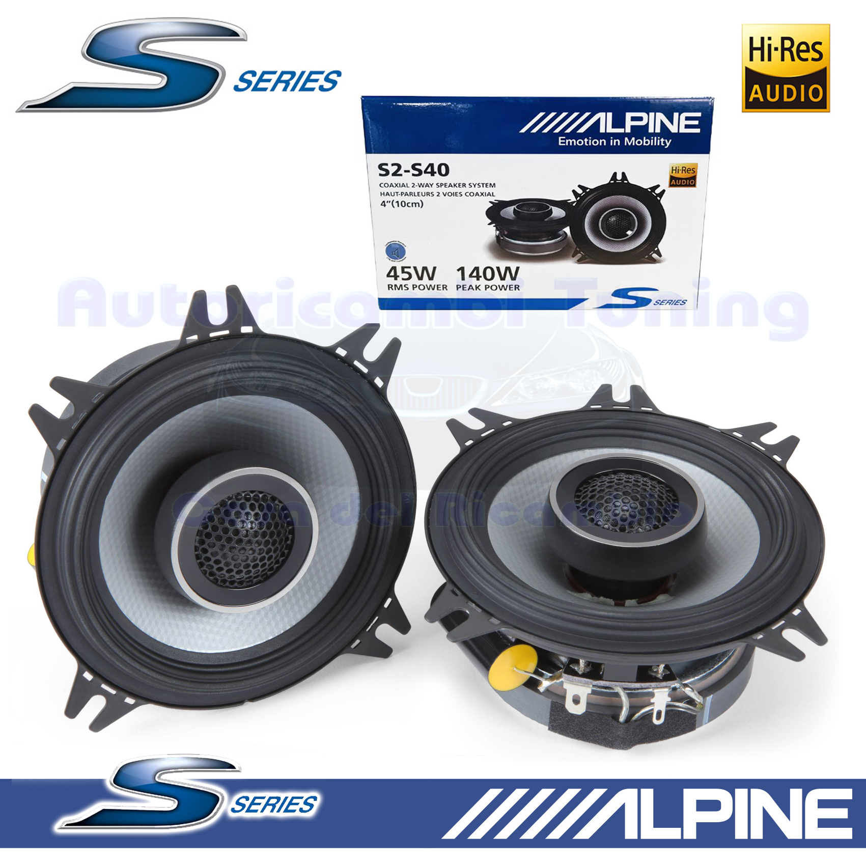 Alpine S2-S40 Ensemble d'enceintes coaxiales 2 voies 4"