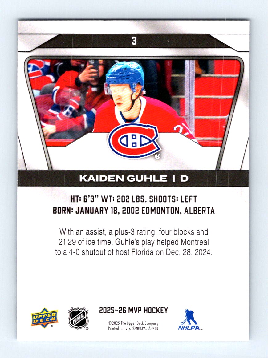 #3 2025-26 Upper Deck MVP ] Kaiden Guhle Montreal Canadiens