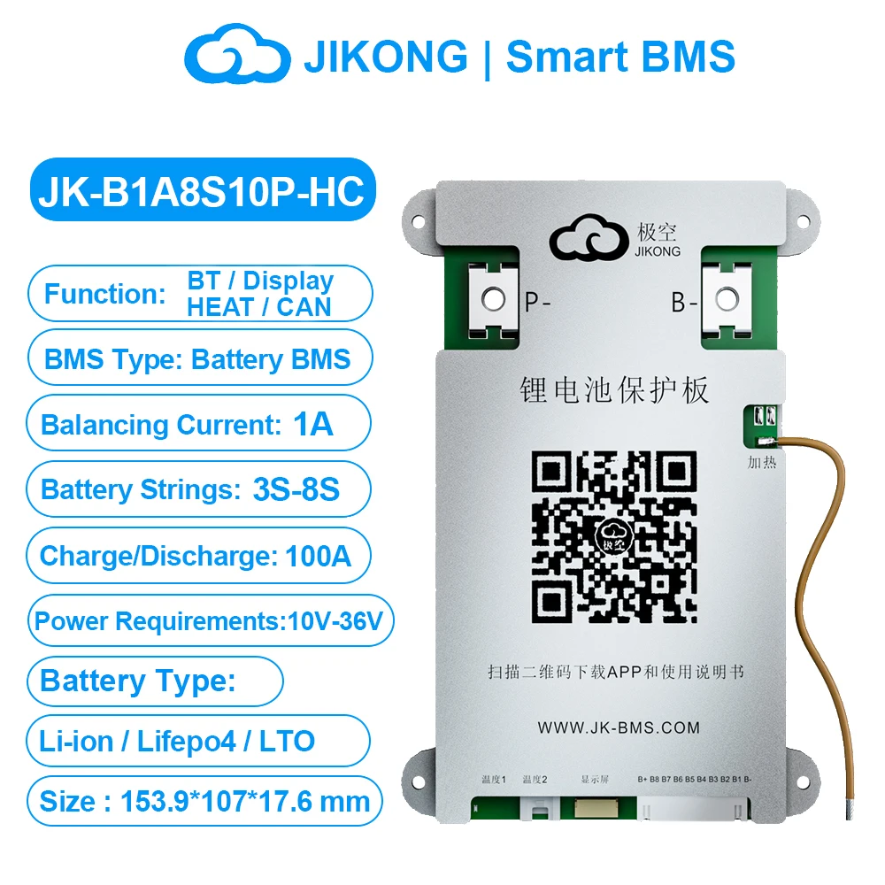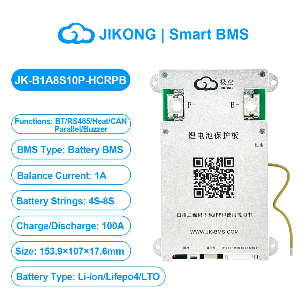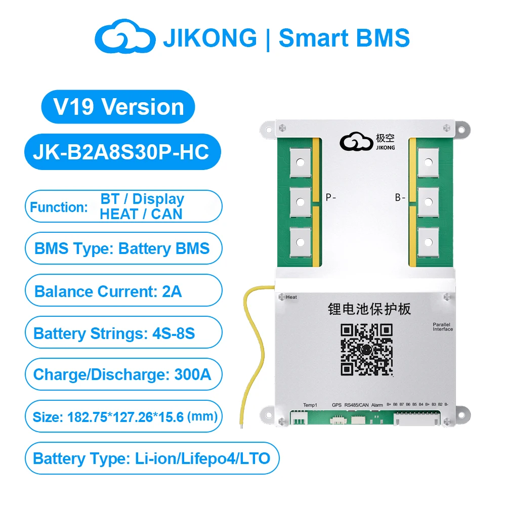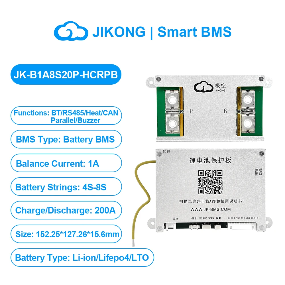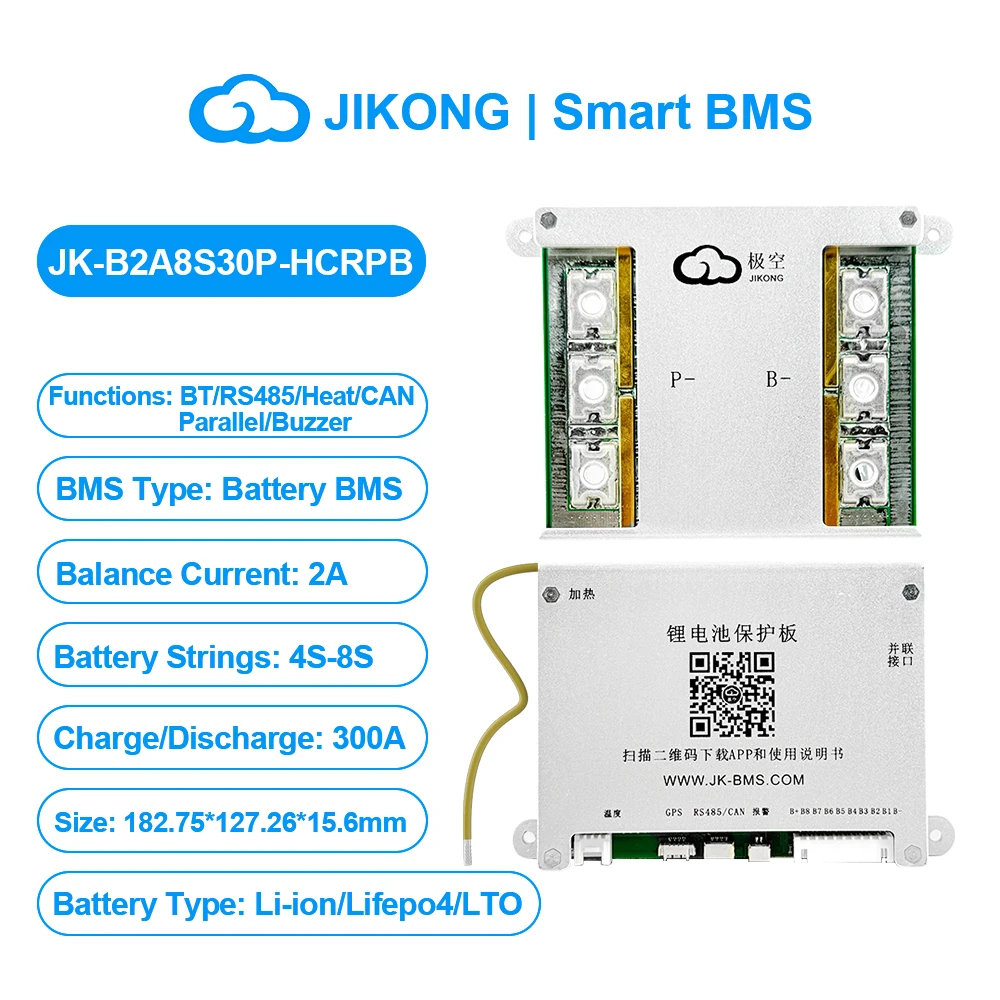 JIKONG JK BMS 3S 4S 5S 6S 7S 8S Smart BMS with BT APP CAN RS485 Heat Parallel Buzzer 12V-36V 1A-2A Active Balance BMS for LifePo4 Li-ion Lto Battery Pack 100A 200A 300A