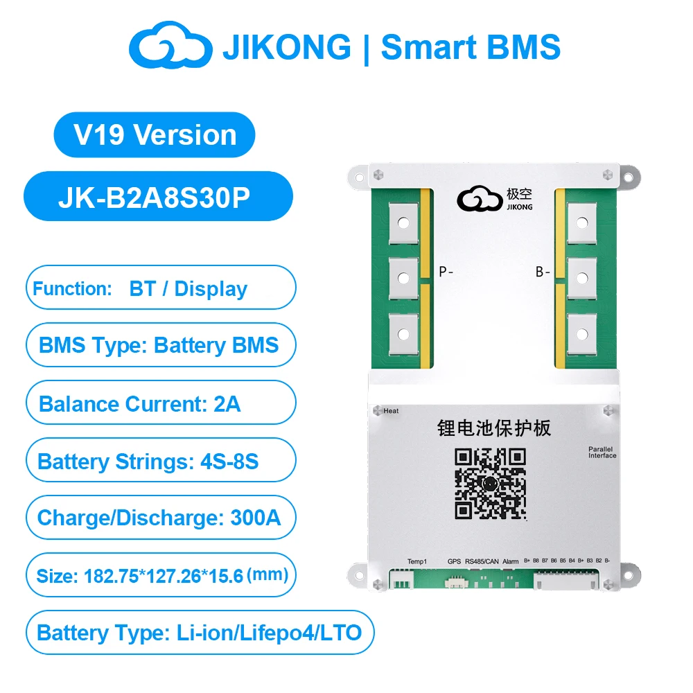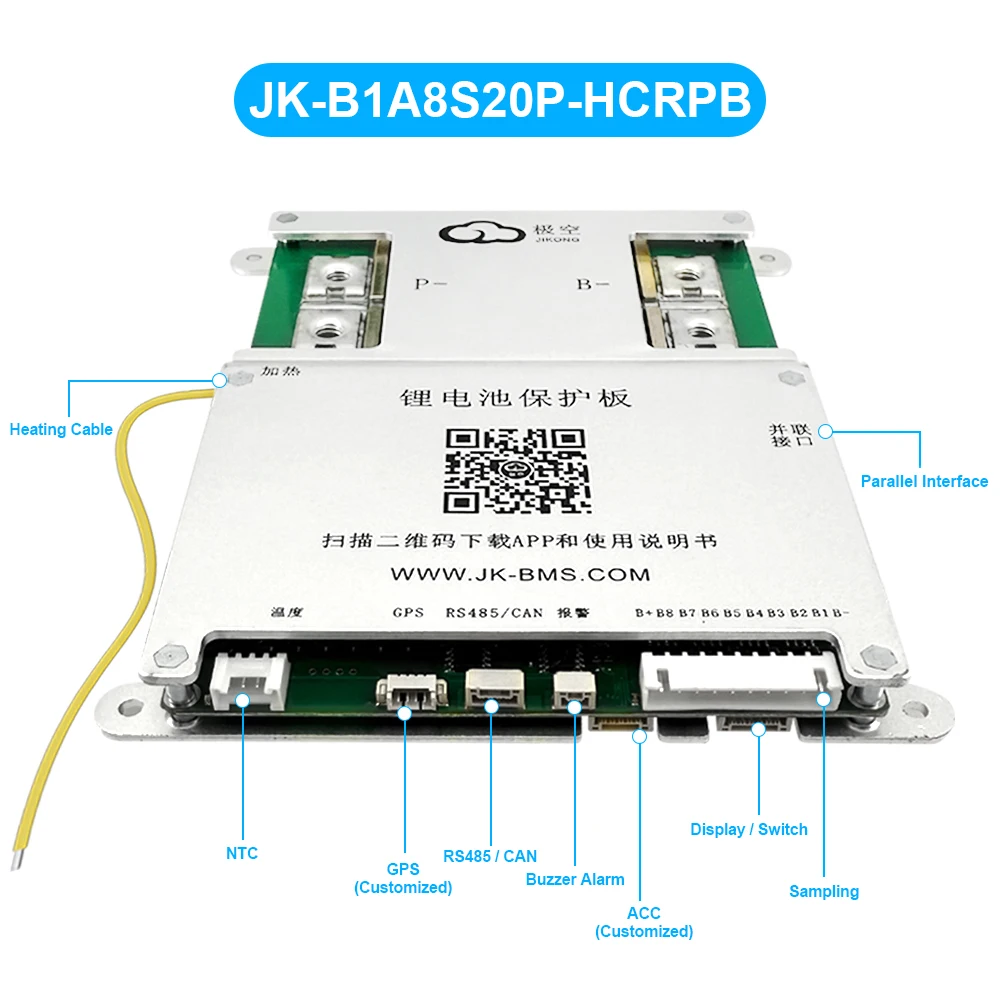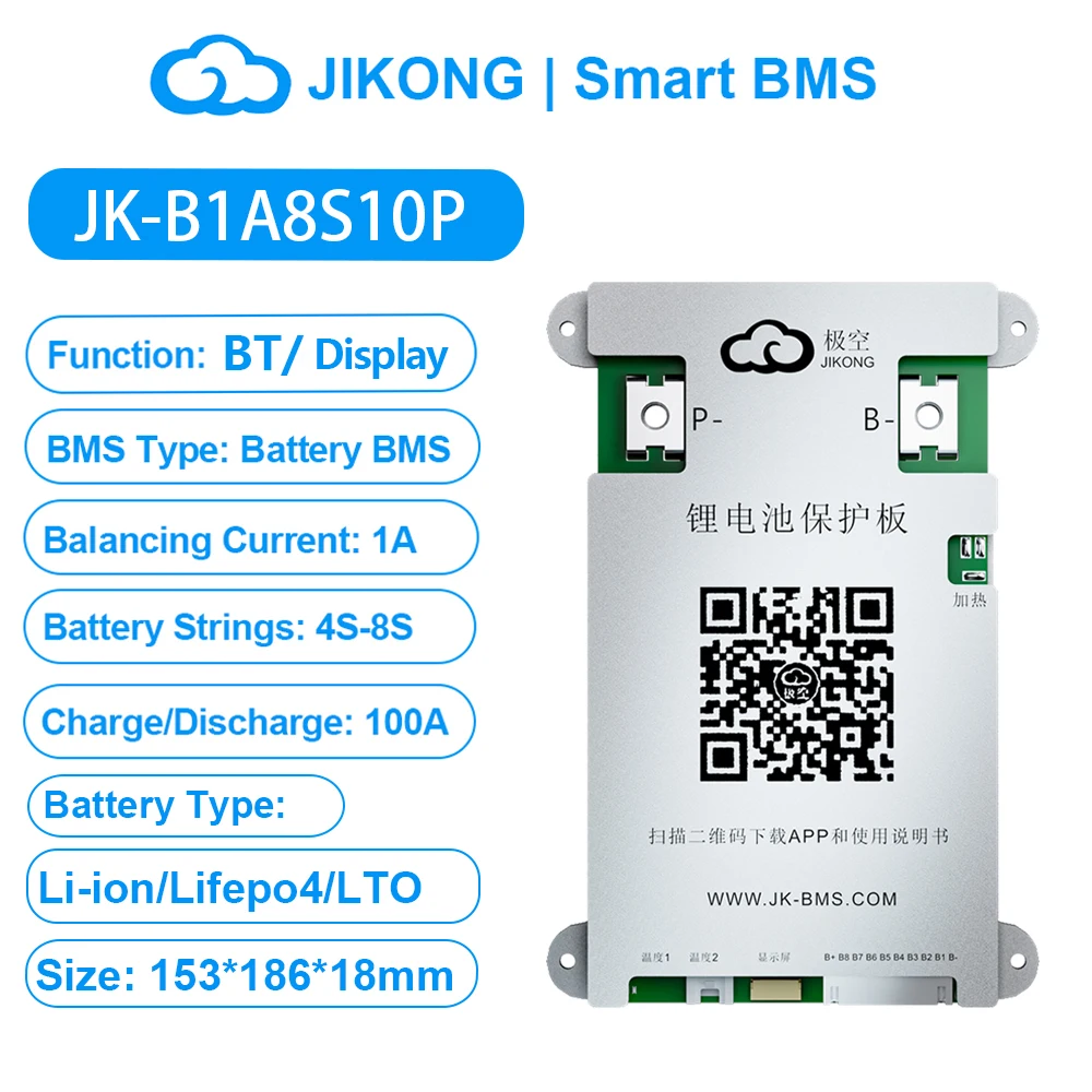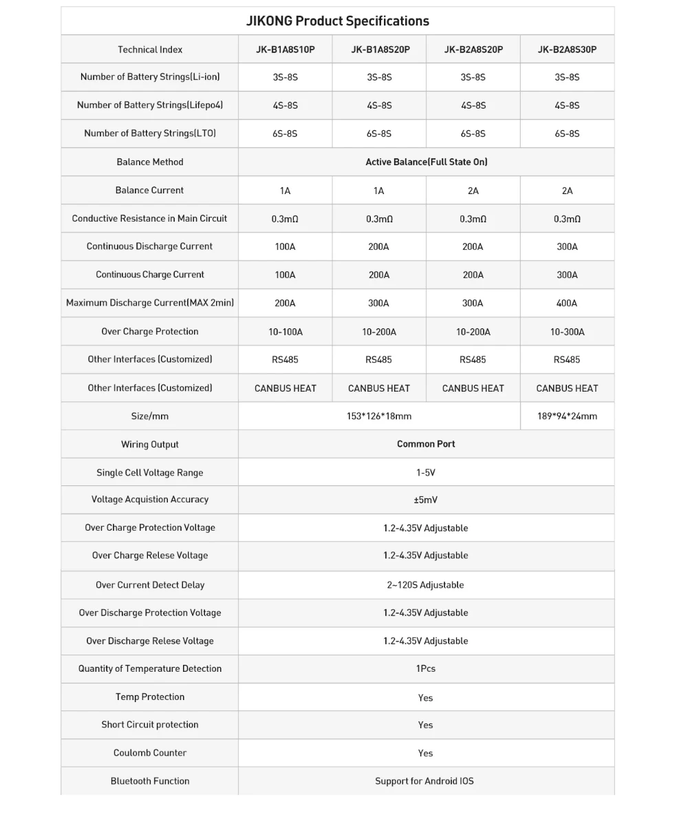 JIKONG JK BMS 3S 4S 5S 6S 7S 8S Smart BMS with BT APP CAN RS485 Heat Parallel Buzzer 12V-36V 1A-2A Active Balance BMS for LifePo4 Li-ion Lto Battery Pack 100A 200A 300A