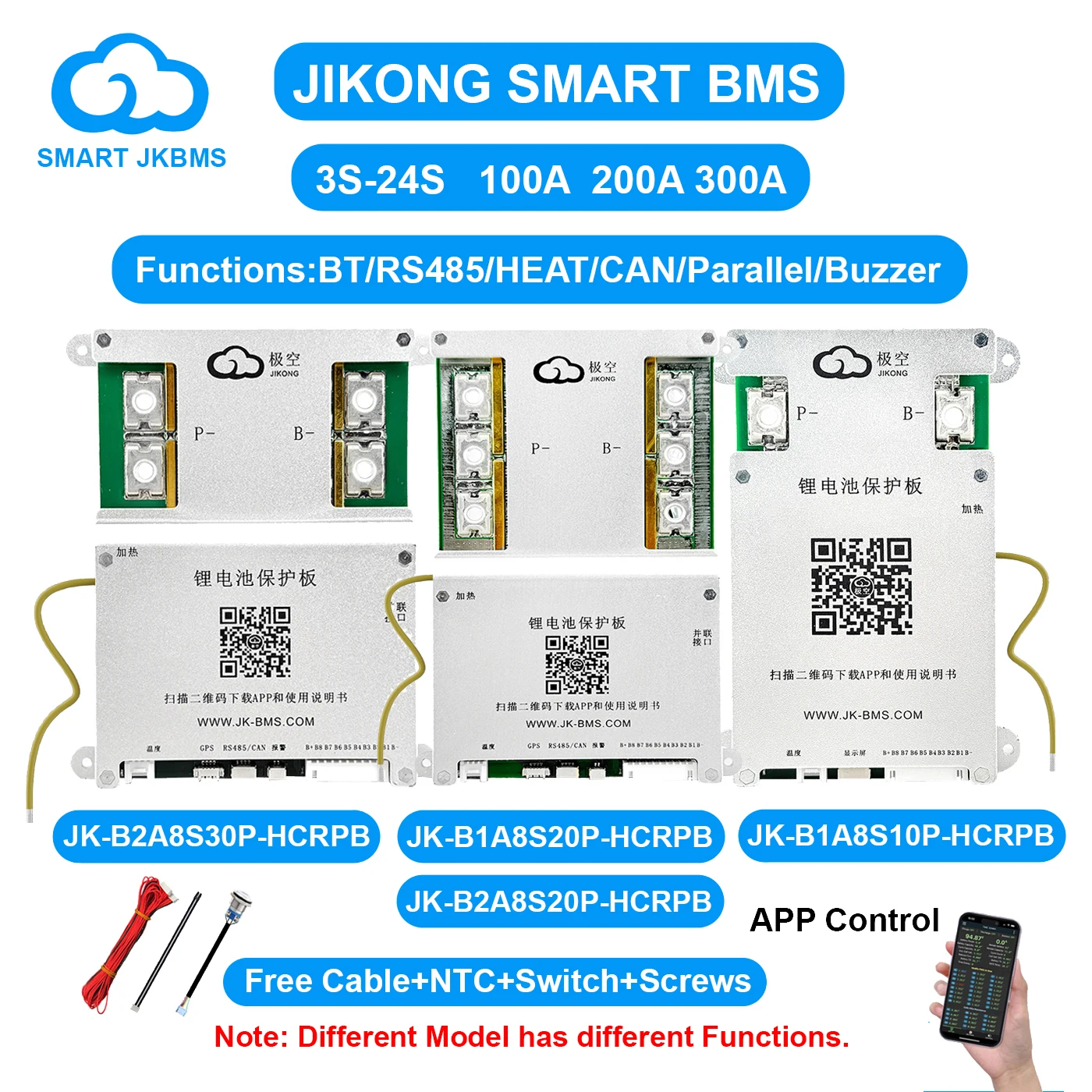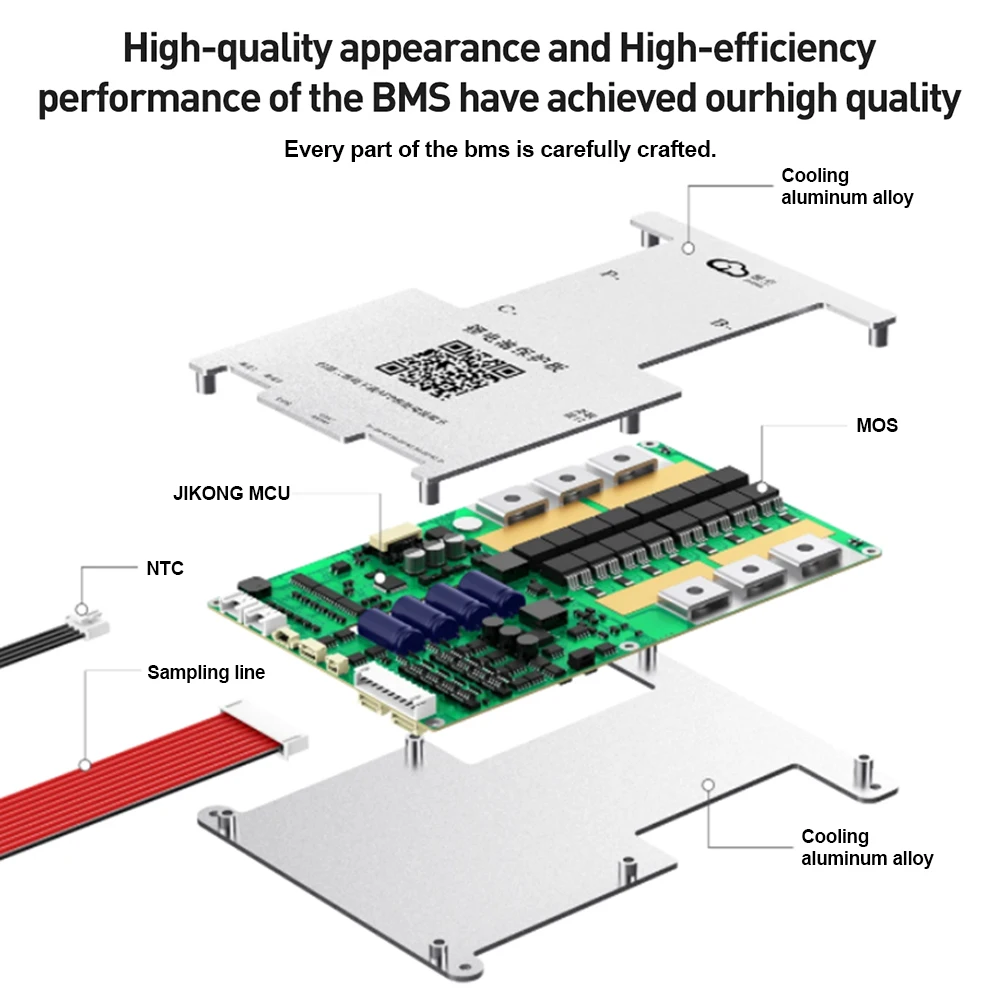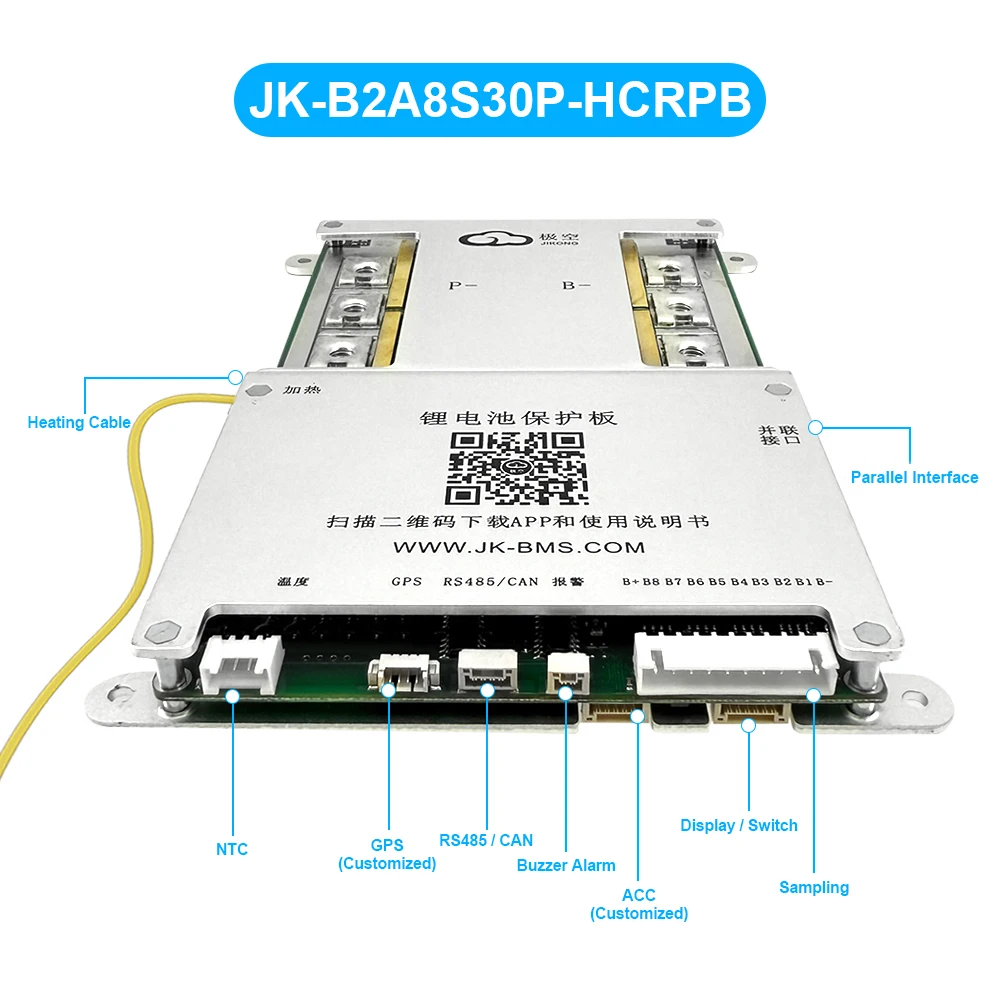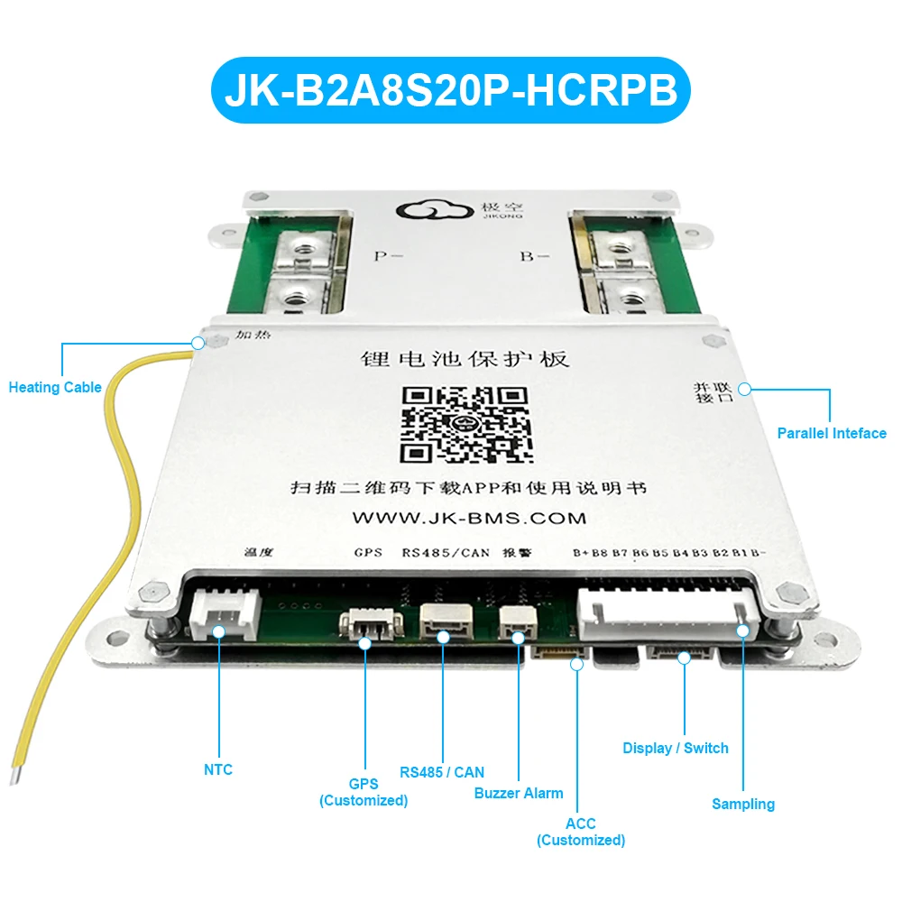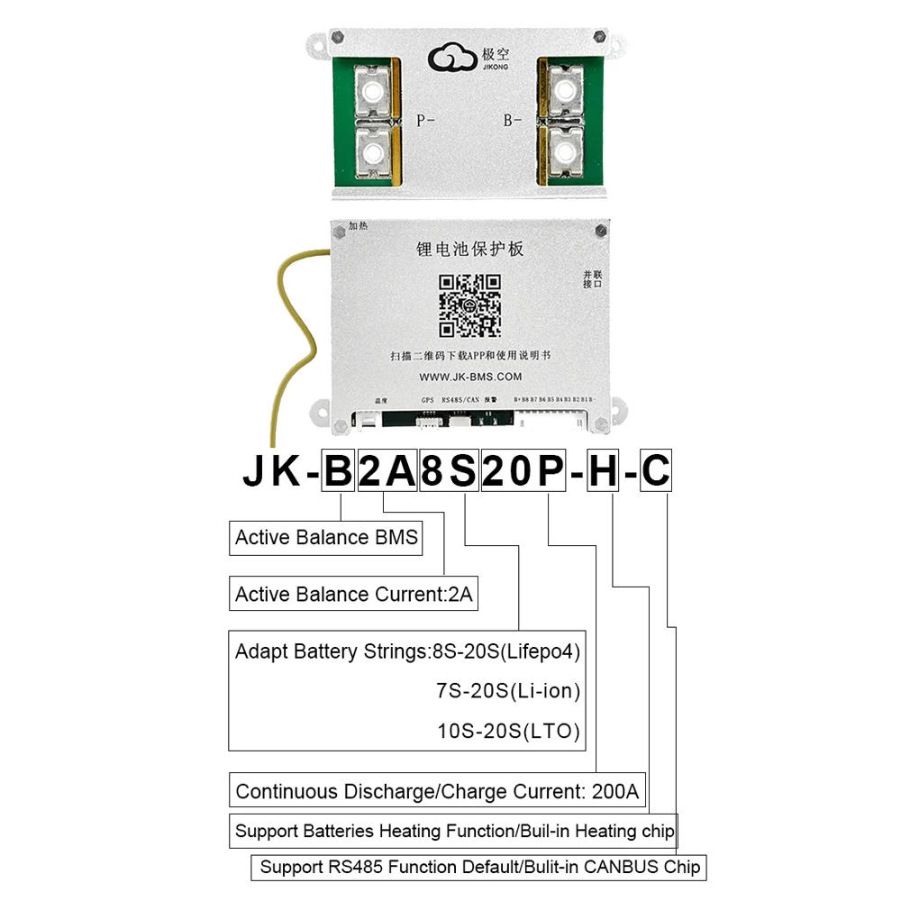 JIKONG JK BMS 3S 4S 5S 6S 7S 8S Smart BMS with BT APP CAN RS485 Heat Parallel Buzzer 12V-36V 1A-2A Active Balance BMS for LifePo4 Li-ion Lto Battery Pack 100A 200A 300A