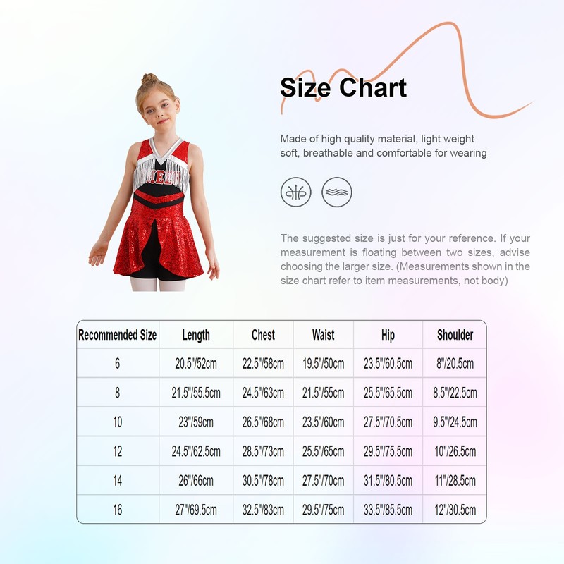 Made of skin-friendly fabric, this cheer leader dance costume is soft and breathable to wear.