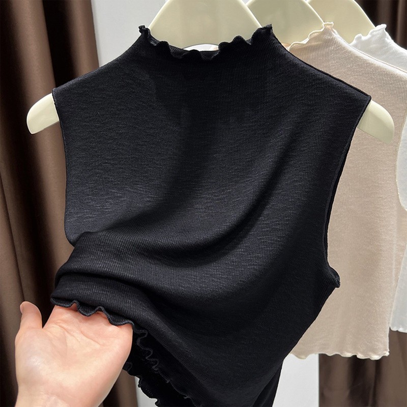 The solid color and sleeveless short style make it a versatile piece that can be easily paired with different outerwear, such as jackets, blazers, or cardigans.