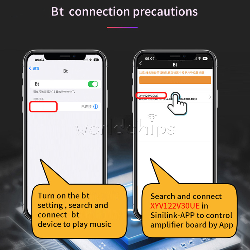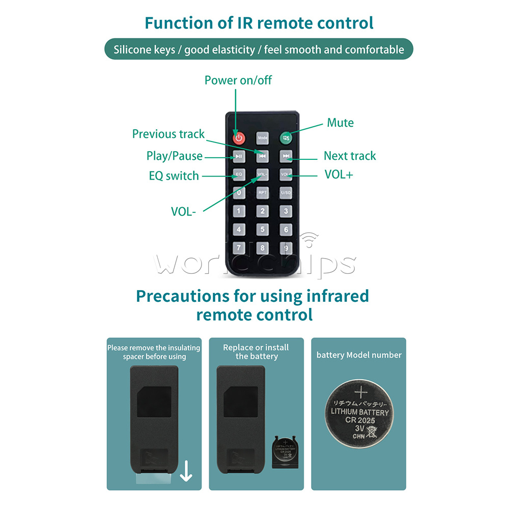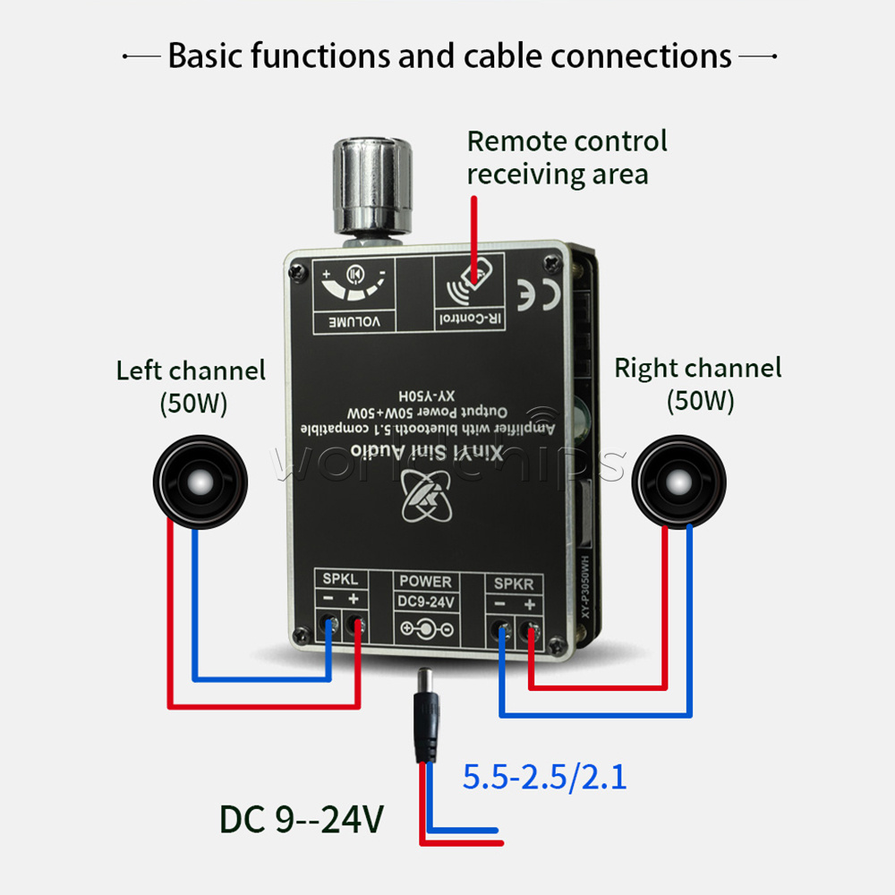 Note: The impedance of the speaker is 4 ohms, and the power supply cannot exceed 21V.