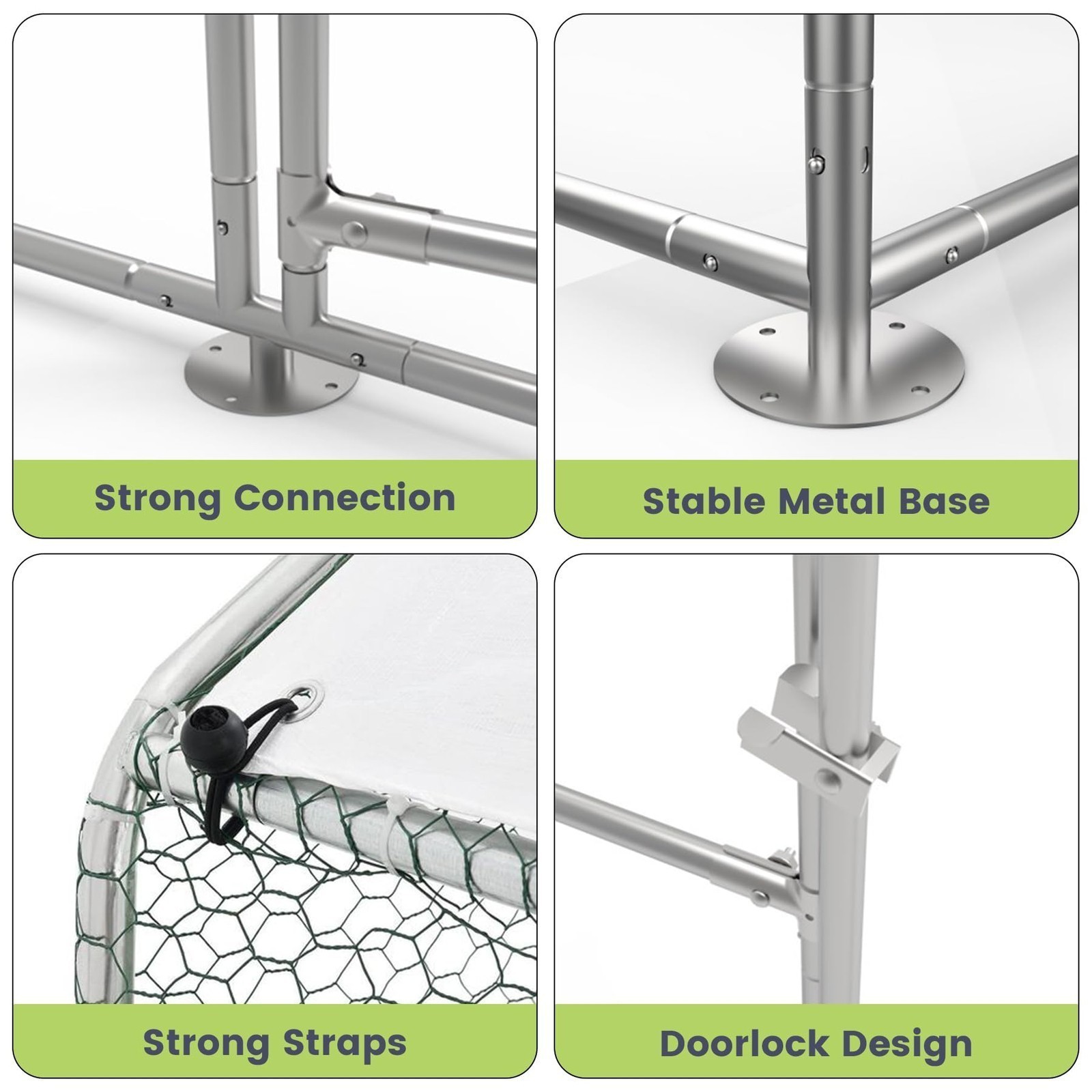 【EASY INSTALLATION FOR ALL-IN-ONE SOLUTION】 - Set up and extend this walk-in chicken cage effortlessly with the included components and simple instructions. With only two people required for installation, this cage offers a hassle-free assembly process, allowing you to get your chickens settled in no time.