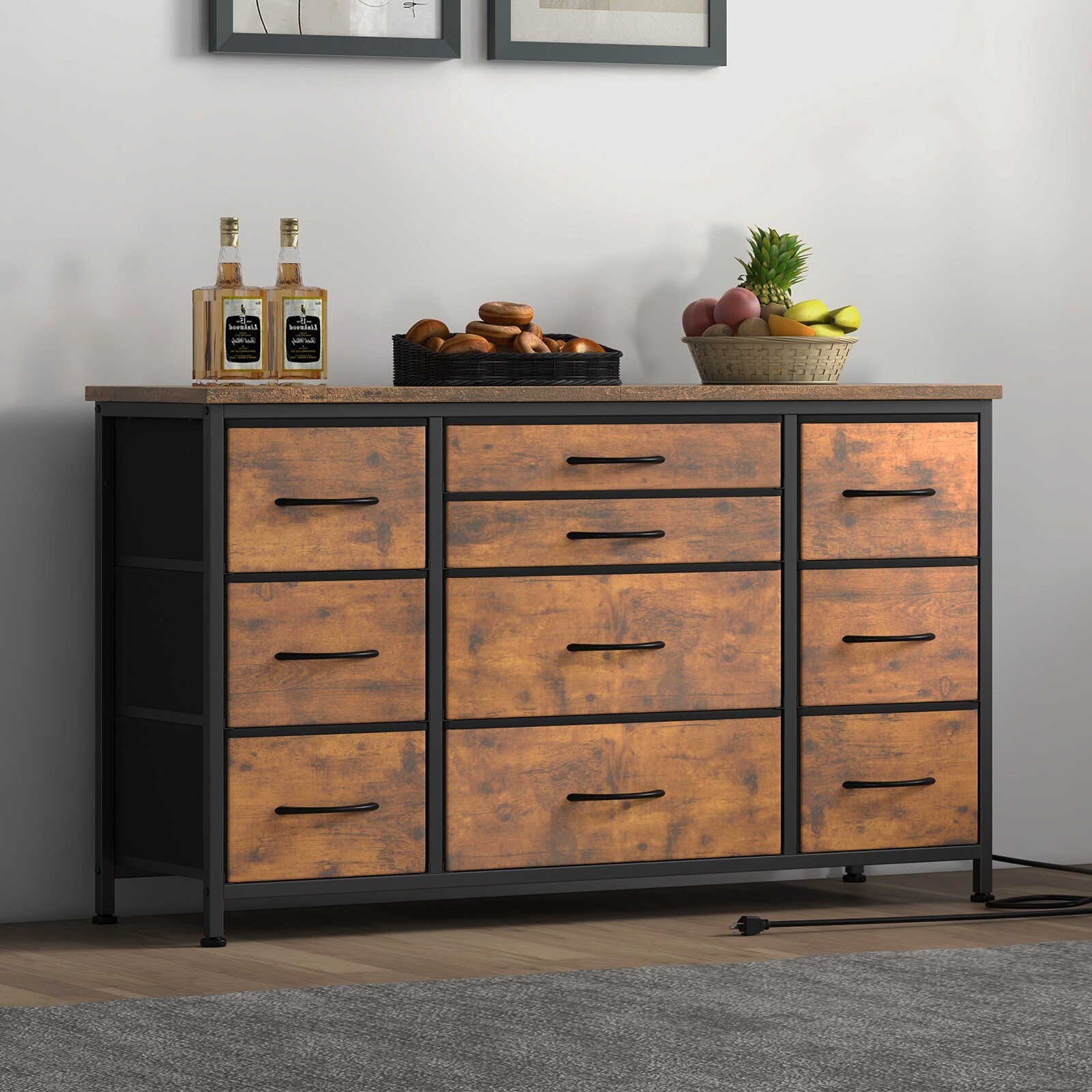 【Spacious Storage Space】The dresser features 10 removable deep drawers, providing endless organization possibilities and protecting your privacy. The wooden tabletop has a maximum storage weight of 60 pounds, making it perfect for vases, photos, mirrors and frequently used items.