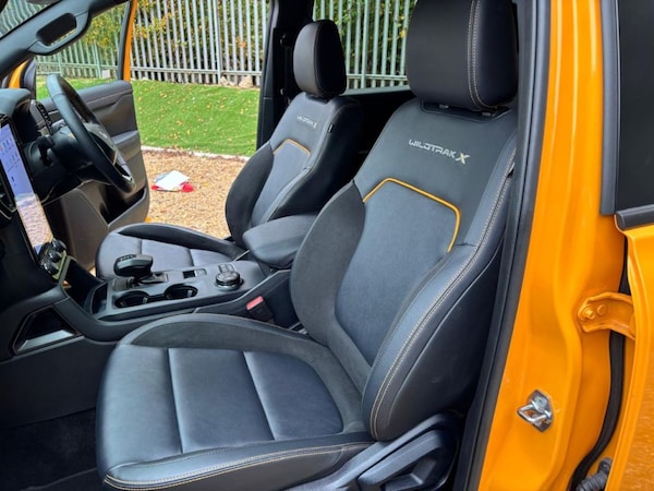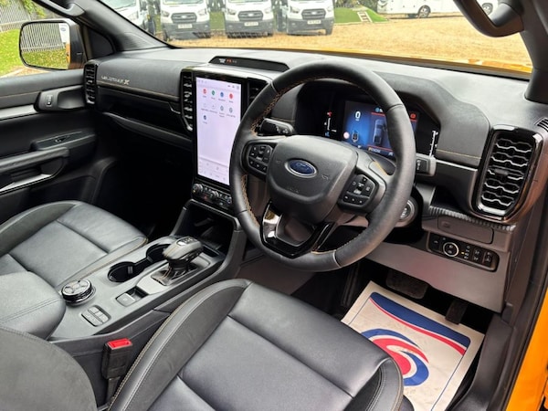 Used low mileage FORD Ranger Wildtrak X 2.0L Bi-Turbo 205PS 10SPD AUTO in CYBER Orange metallic / Embossed Leather EJ74NDE with just 4600 miles. Ford Warranty until 26/11/2027 ** Next service due: NOVEMBER 2026NO VAT ** SYNC 4A Satellite Navigation ** DAB Audio / Apple Car Play / Android Auto ** Factory fitted Tow Bar ** Technology Pack 52 with Adaptive Cruise Control / Front and Rear Park Sensors and Rear Vision Camera and Blind Spot Monitors ** Mountain Top Roll cover ** Power Pack 3 with Wireless Charge Pad ** Heated FrontSeats ** Heated Steering wheel ** 3500KG towing Capacity ** Climate Control ** 1 Shot Rear Window ** Load Box Rear Bed Liner ** One touch rear Windows ** Electronic Park Brake ** 2 x ISO FIX ** Auto Wipers ** Auto Lights ** Auto headlights ** 7 Drive Modes ** Heated Seats ** Heated Steering Wheel ** Powered 10-way adjustable driver’s seat** LED headlights with signature graphic LED daytime running lights - we offer 8.9% APR LOW RATE FINANCE and all part exchanges are welcome - call us on to book your test drive - we offer 8.9% APR LOW RATE FINANCE and all part exchanges are welcome .NO VAT to pay, All Wheel Drive, Cruise Control, Front Centre Armrest, Front Fog Lights, Heated Front Seats, Immobiliser, Rain Sensor, Rear Centre Armrest, 1 Owner from New, Rear Wiper, Tonneau Cover, Ultrasonic Alarm, Rear Headrests, Illuminated Glovebox, Service Interval Indicator, Security Alarm, Manufacturer Warranty Balance, Bluetooth Hands Free Telephone Connection, Privacy Glass, Courtesy Lights, Height Adjustable Driver's Seat, Body Colour Door Handles, Body Colour Bumpers, 6 Speakers, Bang & Olufsen Pro Audio, Adaptive Cruise Control, Driver Assist Pack, Heated Seats, Front Side Airbags, Accessory Sockets, Seatbelt Warning, Front Map Lights, Electric Power Steering, Steering Wheel Mounted Controls, Chrome Interior Door Handles, ABS/EBD, Auto Dimming Rear View Mirror, Passenger Airbag Deactivate Switch, Passenger Armrest, Cargo Hooks, Driver's Electric Adjustable Lumbar Support, Hill Descent Control, Active Front Headrests, Premium Audio System, Isofix Child Seat Preparation, Electrically Adjustable And Heated Door Mirrors, Stereo Radio/CD Player, Leather/Alcantara Upholstery, Blind Spot Monitors, Boot Light, Front And Rear Curtain Airbags, Door Mirrors Tilt When Reversing, Illuminated Ignition Switch, Electric Front/rear Windows, Leather Steering Wheel And Gear Knob, Honda Super Locks, Brake Assist Function, Front Seatback Pockets, Rear View Camera, Driver/Front Passenger Airbags, Front Passenger Seat Height Adjust, Tilt/telescopic Adjustable Steering Wheel, HID Headlights, Hill Start Assist, 5 X 3 Point Seatbelts, Subwoofer, Remote Central Locking With 2 Remote Folding Keys, Headlight Washers, Dual Zone Automatic Climate Control, Daytime Running Lights, Electrically Retractable Door Mirrors, Cornering Light, Vehicle Stability Assist, Paddle Shift Controls, Sunglasses Holder, Welcome Home Function, 60/40 Split Folding Rear Seat, Ambient Interior Lighting, Aspheric Door Mirrors, DAB Audio, Driver/passenger Sunvisors With Illuminated Vanity Mirrors, Trailer Stability Assist, Auxiliary Socket For External Device, Automatic Headlights With Dusk Sensor, Speed Limiter, Deflation Detection System, Front And Rear Parking Sensors, Footwell Ambient Lighting, High Beam Assist, Electric Lumbar Adjustment On Passenger's Seat, Intelligent Multi Info Display, Body Colour Roof Rails, USB/iPod Connection, Brushed Alloy Inlays, Heated Front Screen, Full Main Dealer History, Bluetooth, Wireless Charge Pad, Dual Zone Climate Control,