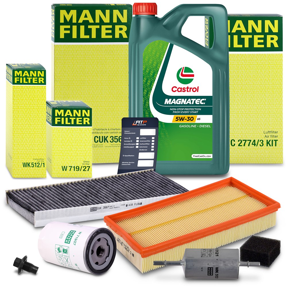 1x MANN-FILTER INSPEKTIONSPAKET FILTERSATZ SET B INKL. 5 L CASTROL Magnatec 5W-30 A5