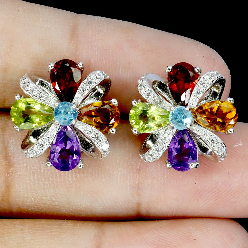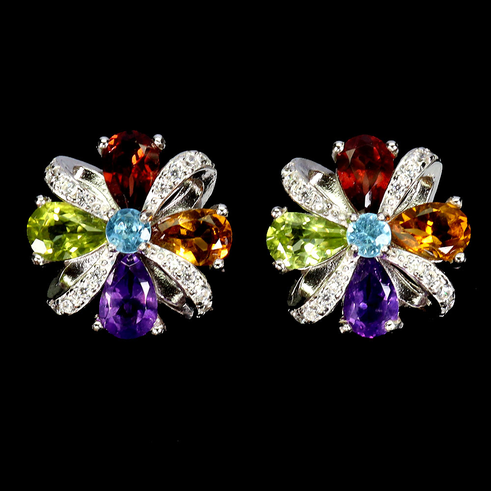 * STONE 3.0 TO 6.0 X 4.0 MM. * CZ 1.0 MM. * FACE EARRINGS 14.0 X 14.0 MM.
