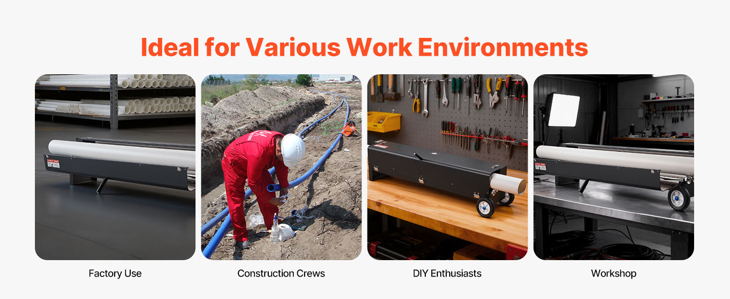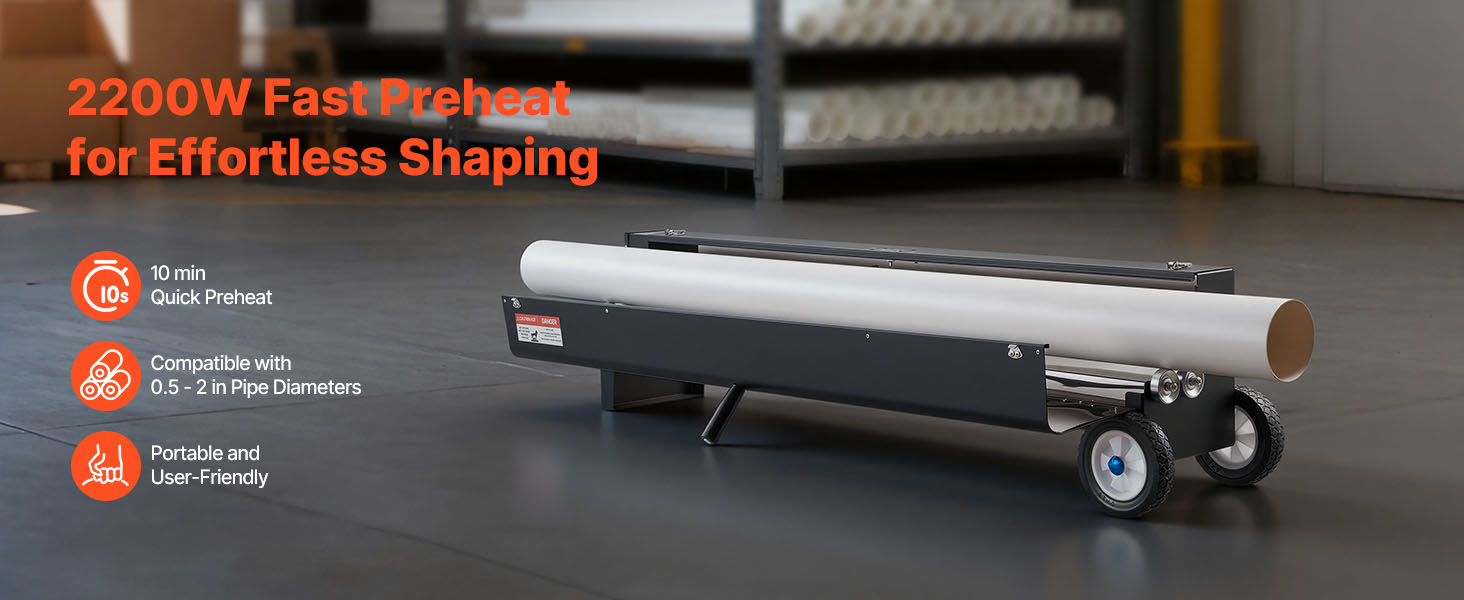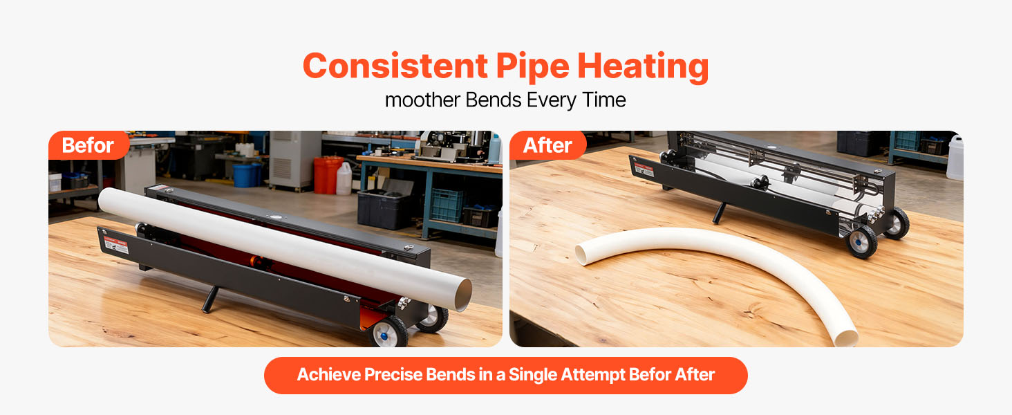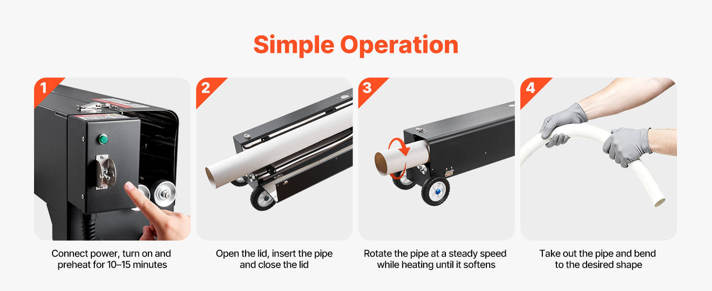 This electric PVC heater is designed for ease of use. Simply connect it to a power source, allow it to preheat for 10–15 minutes, place the pipe inside, and close the lid. Rotate the pipe evenly until it becomes pliable, then shape it as needed to achieve uniform and precise results every time.