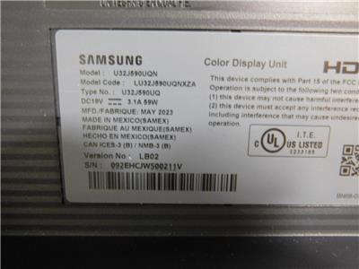 SAMSUNG 32” LU32J590UQNXZA U32J590UC Color Display Unit #D10