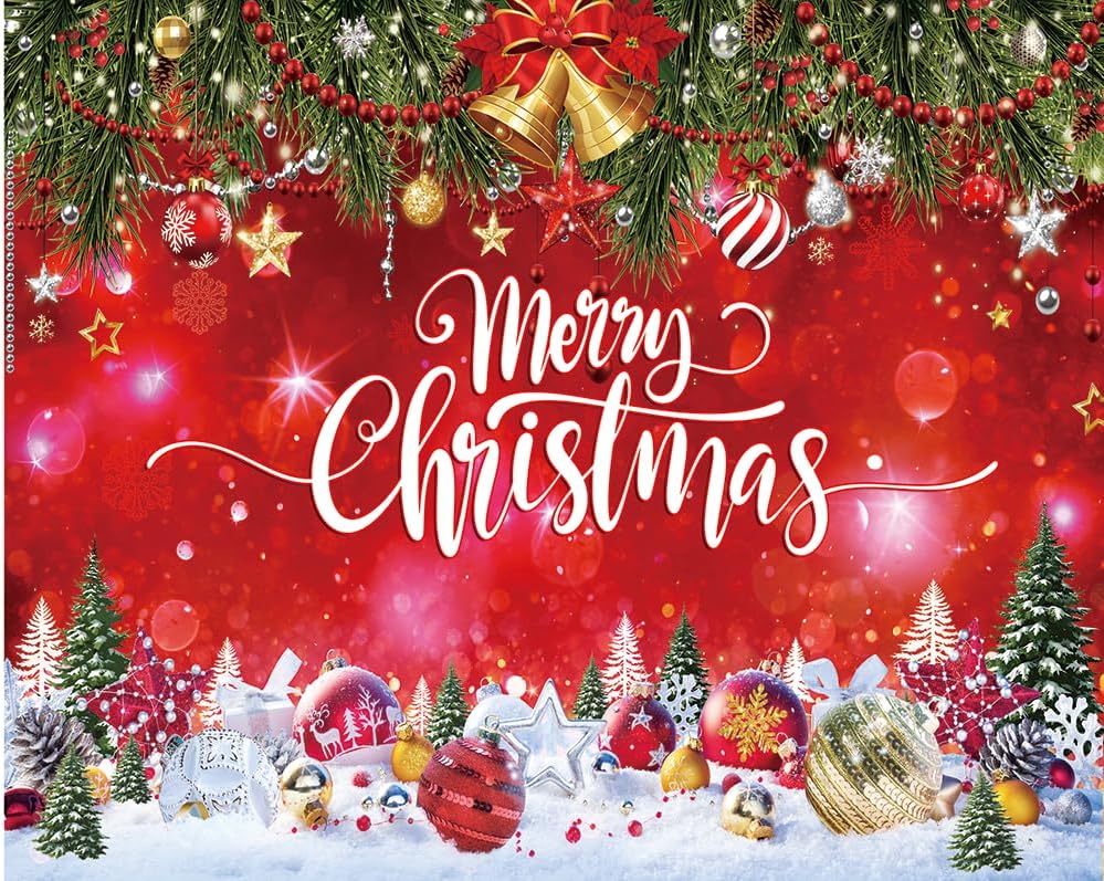 Festive Design: This backdrop features vibrant red colors, sparkling Christmas ornaments, Christmas trees, and a festive "Merry Christmas" message, creating a joyful atmosphere for your holiday celebrations.