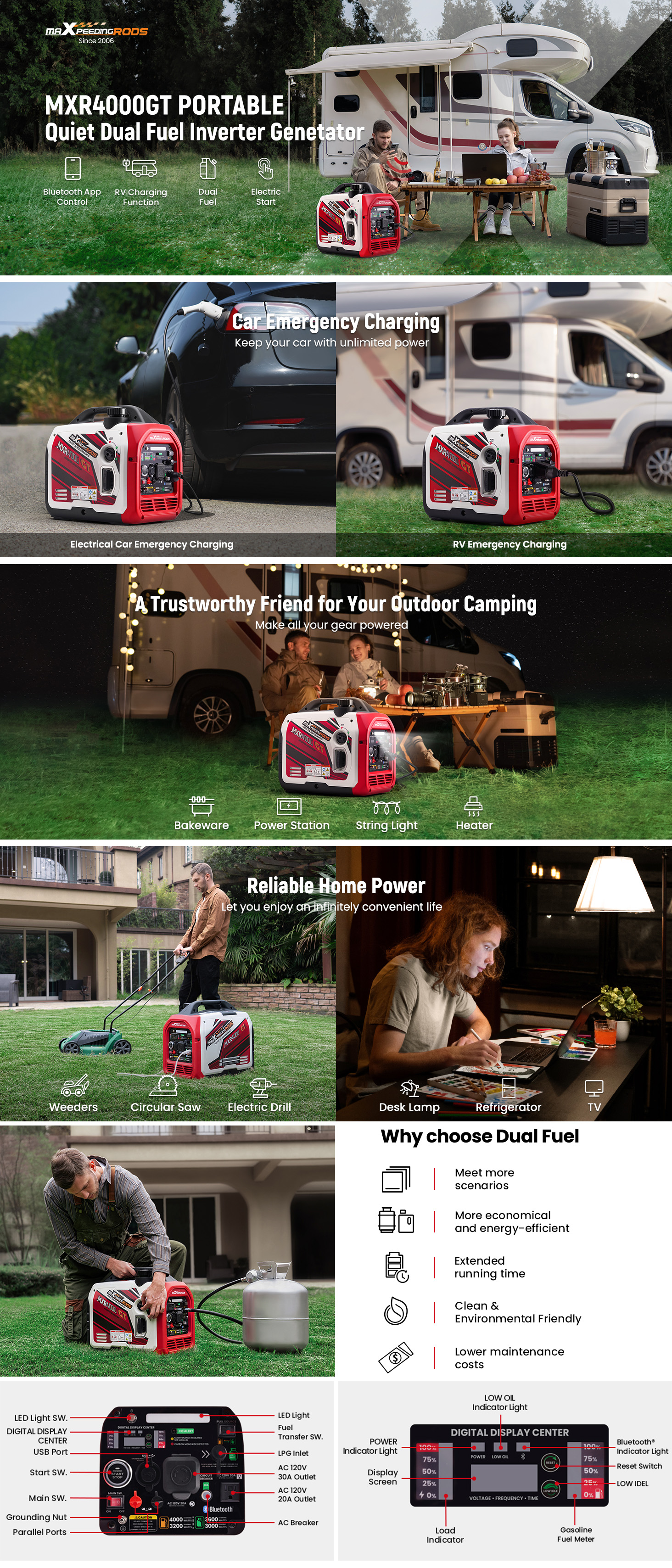 4000W Dual Fuel Generator Gas LPG Portable Inverter Bluetooth Start for Camping