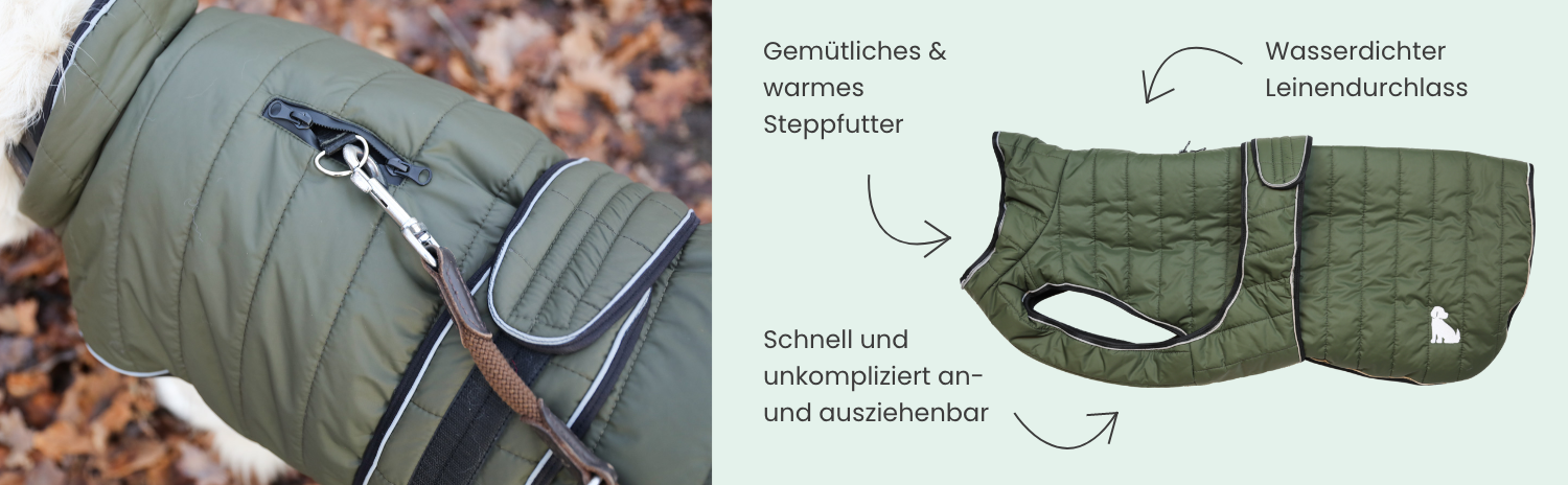 Der Hundemantel im Steppdesign von MS-Trachten ist in verschiedenen Farben erhältlich und verbindet zuverlässigen Wärmeschutz mit einem schlichten, gemütlichen Design und ist damit ideal für die kalte Jahreszeit. Das Design besticht durch seine schlichte Eleganz mit einem niedlichen weißen Hundelogo als besonderer Blickfang.