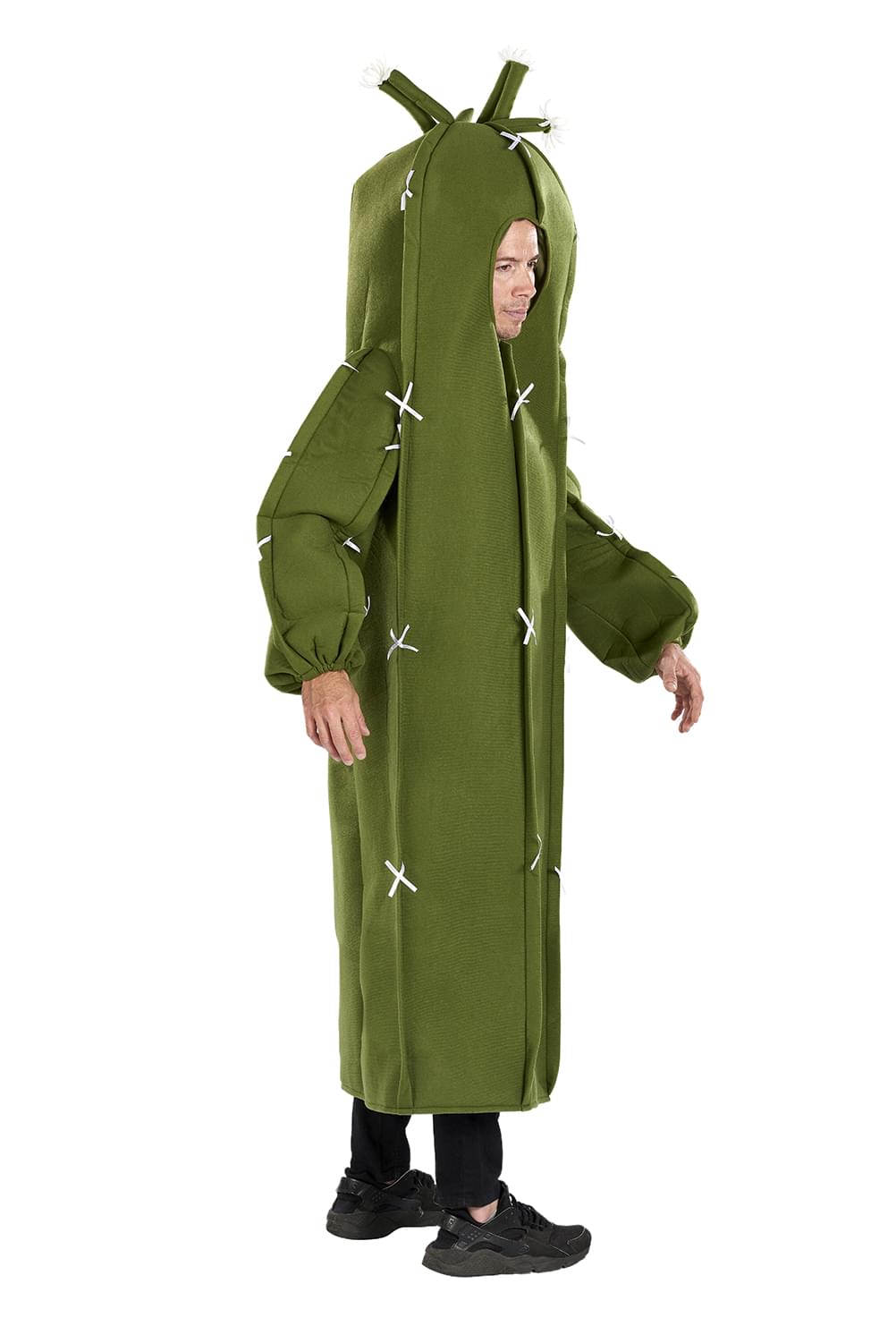 Look sharp in this cactus costume! Designed to look like a saguaro cactus, this cute adult costume is finely detailed with a full-body green suit that serves as the trunk of the unique desert plant. This funny costume includes a one-piece tunic, along with soft white "spikes" and matching white flowers on the head of the piece. Made of 100% polyester tricot laminated with foam, this high-quality cactus costume is perfect for attending themed parties and cosplay events year-round.